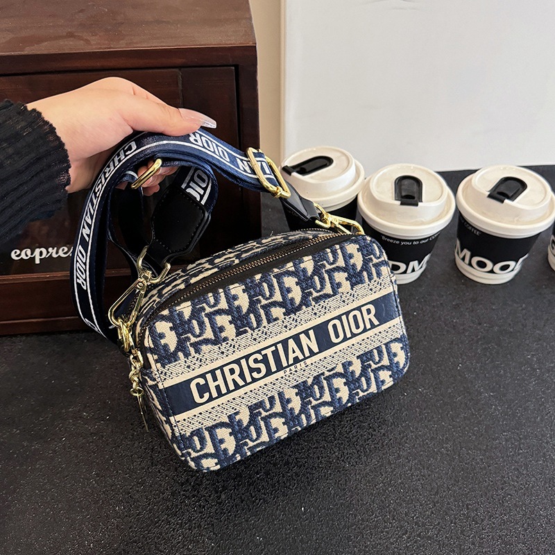 Advanced texture camera bag for women's 2025 autumn and winter new style wide shoulder strap fashionable small square bag embroidered western-style diagonal cross bag