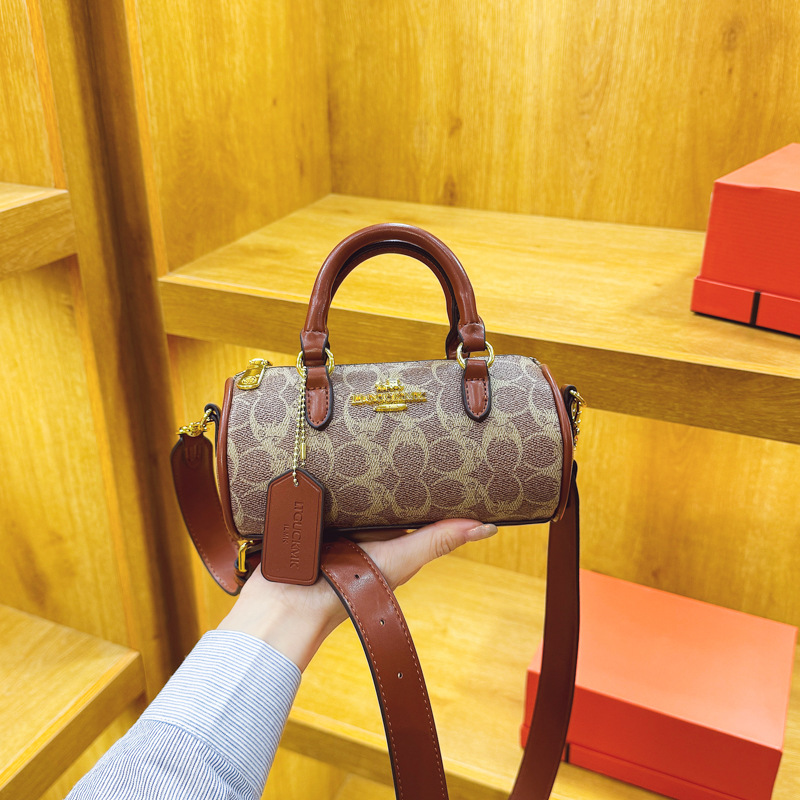 Koujia's new Lacey20 single shoulder crossbody bag, retro and trendy Boston coated laminated leather cylindrical bag, pen holder bag