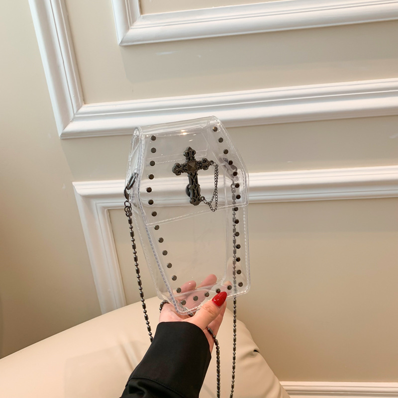 This year's popular bag 2025 new forest sweet girl transparent jelly bag ins fashionable rivet crossbody bag