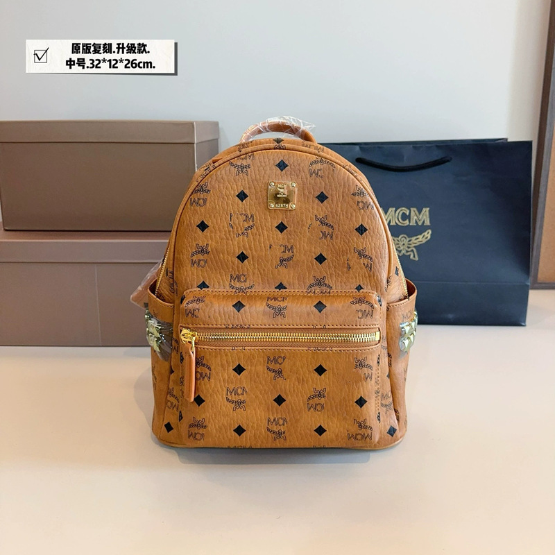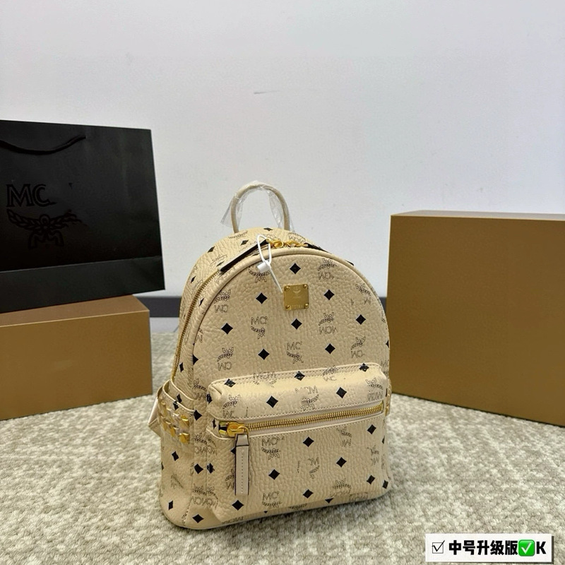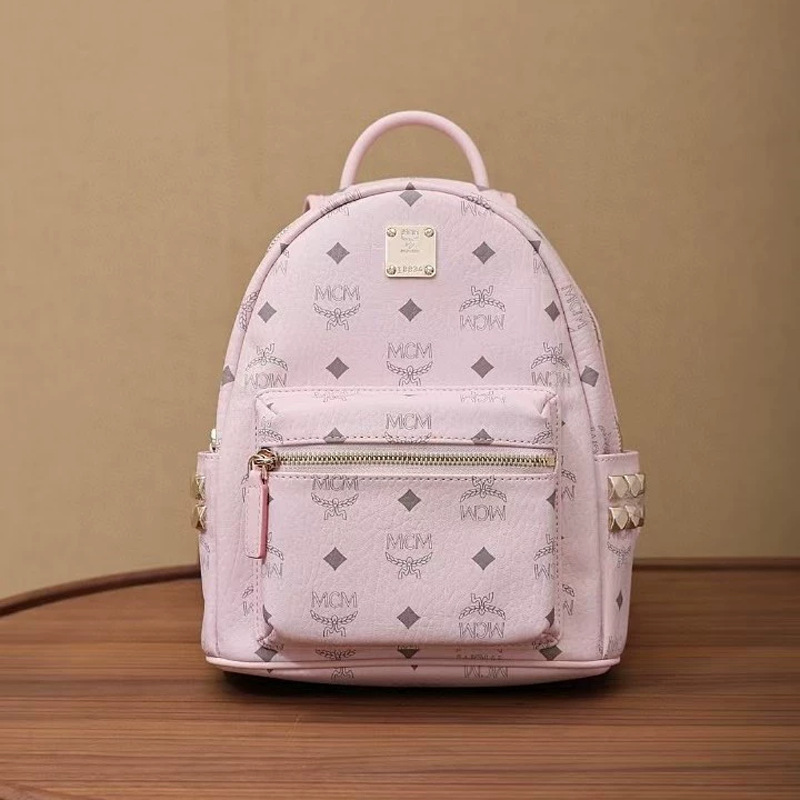 New 2025M home printed backpack for both men and women, classic high school student backpack with rivets, large capacity travel bag