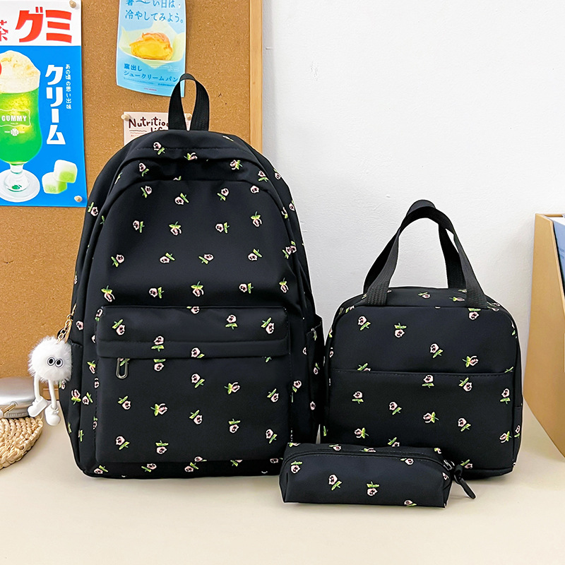New large capacity student backpack three piece set, junior high school backpack lunch bag, foreign trade student backpack insulation bag
