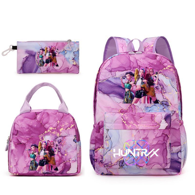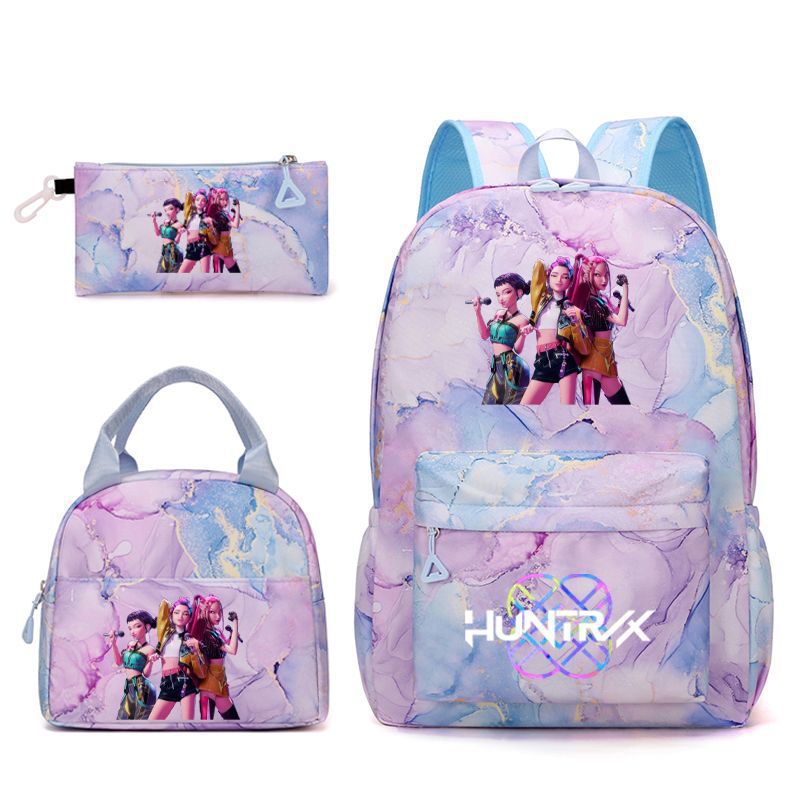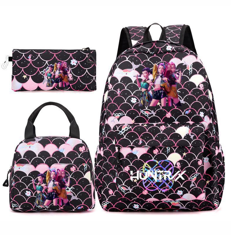 Monster Hunt Team's new student backpack and women's backpack three piece set, fashionable printing trend, Amazon cross-border foreign trade