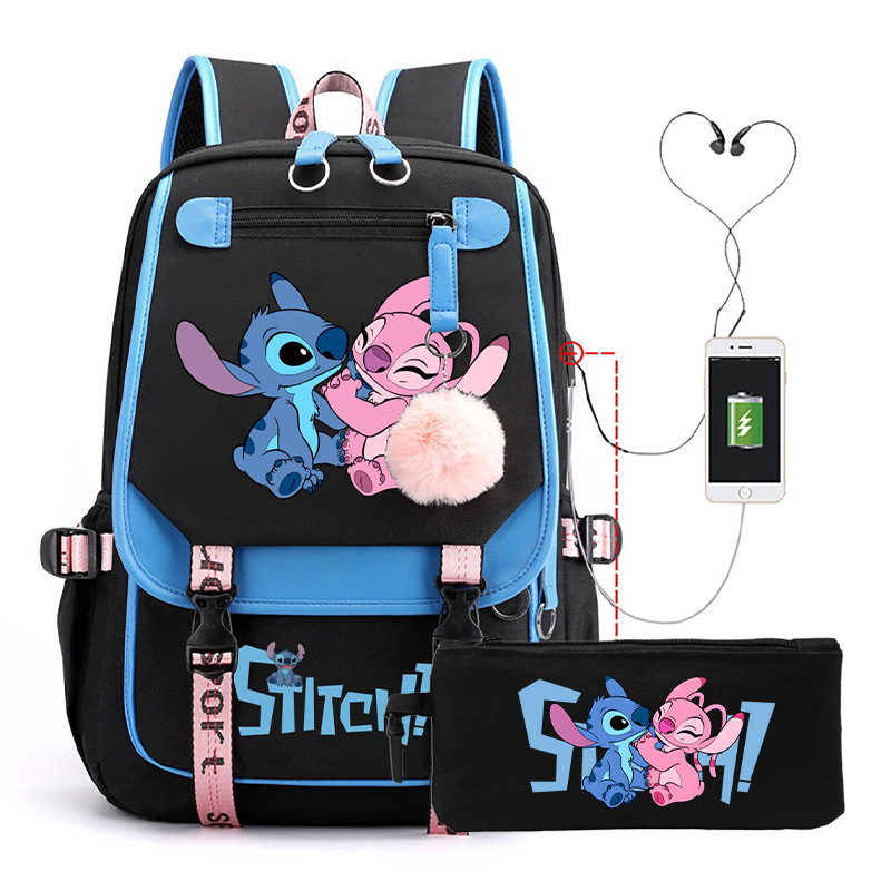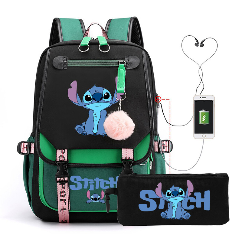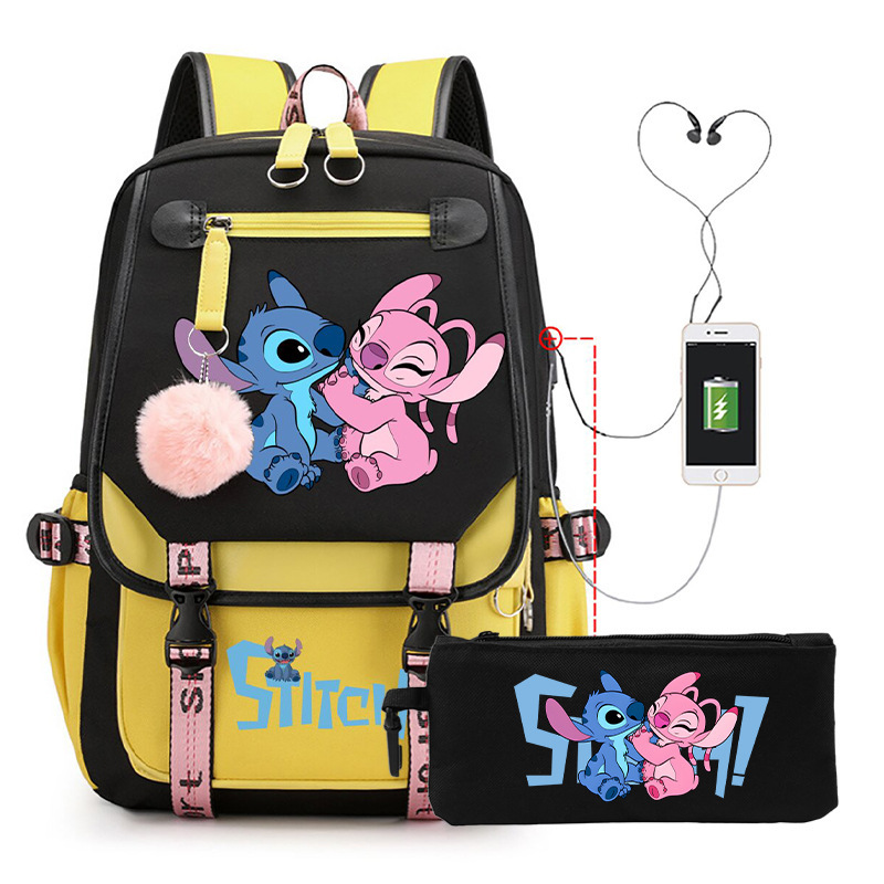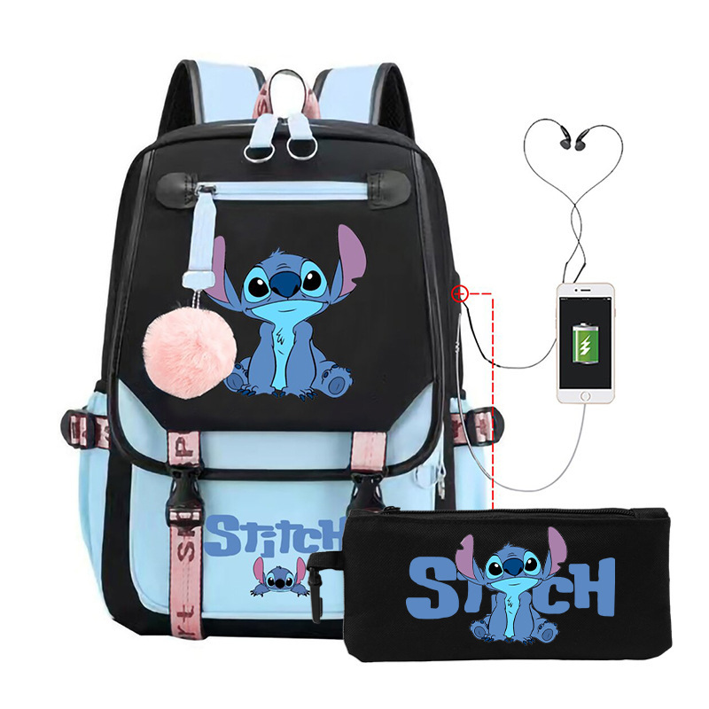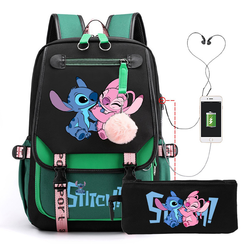 Cross border hot selling anime backpack, interstellar baby, cute cartoon backpack, USB casual student zipper pencil case set