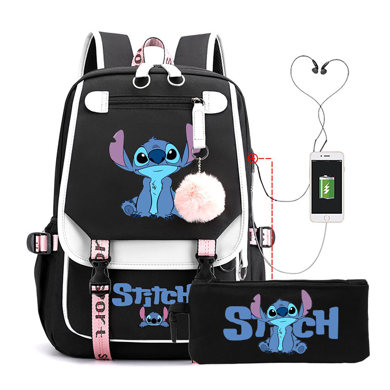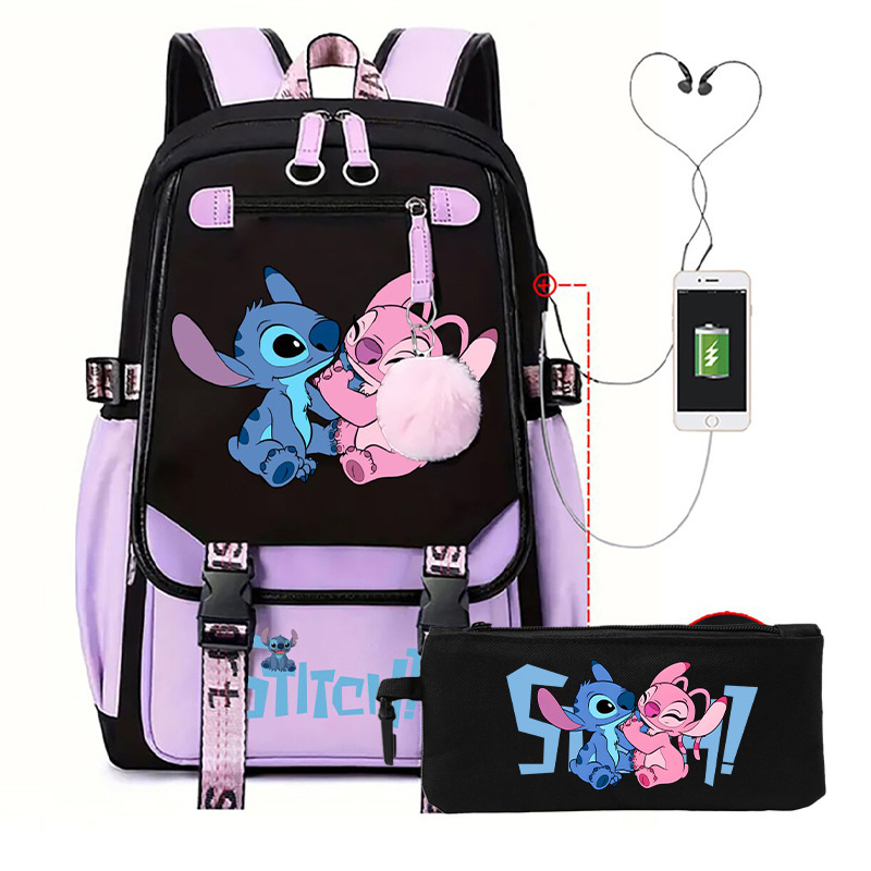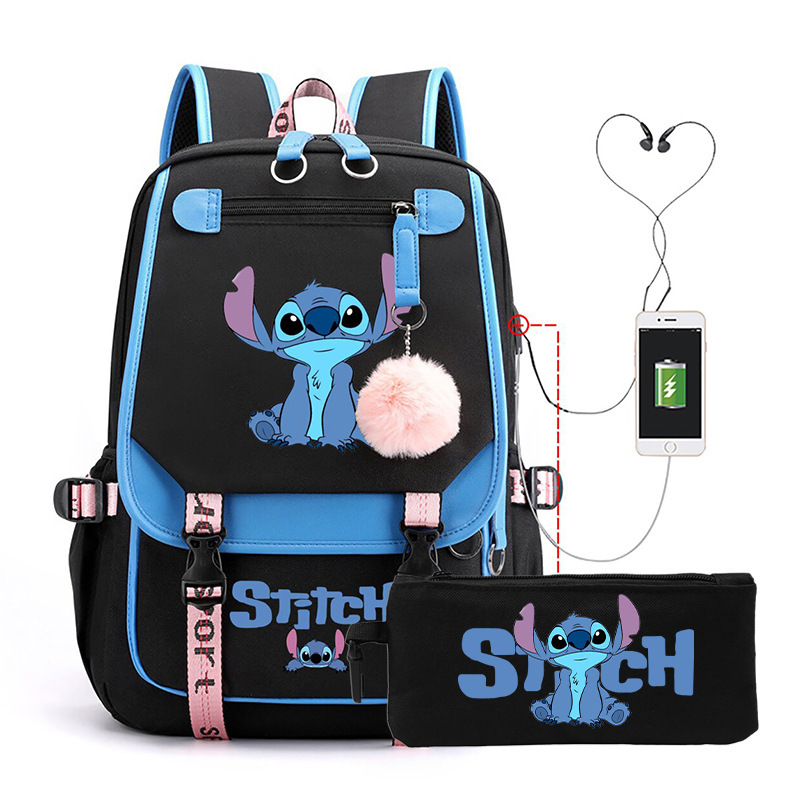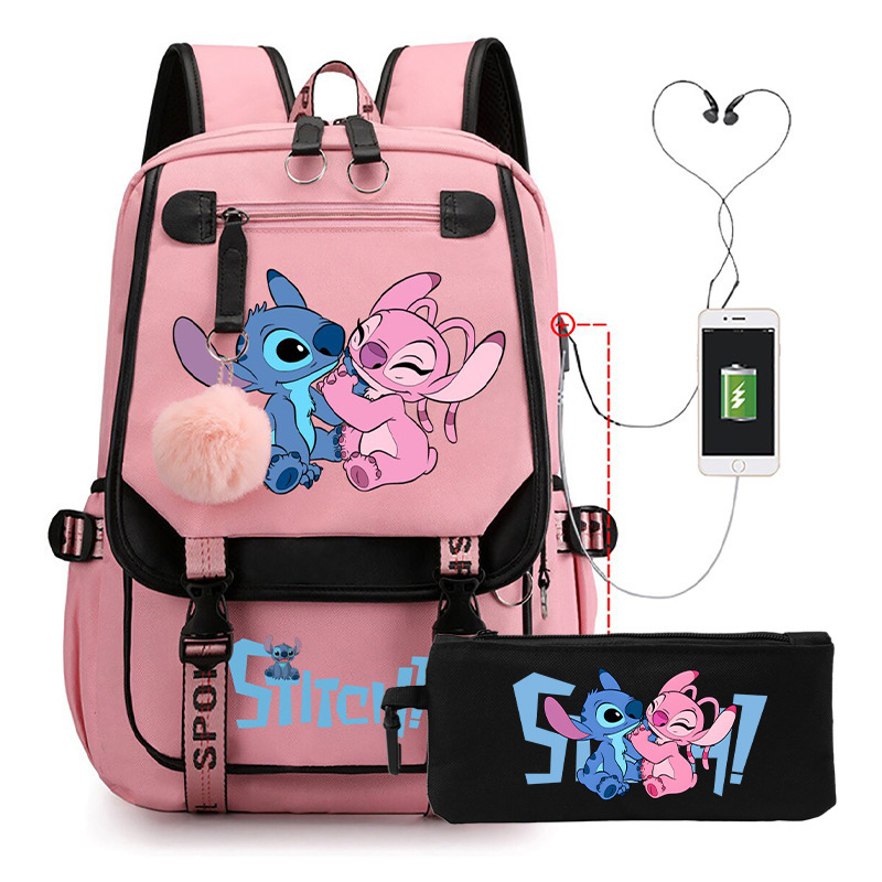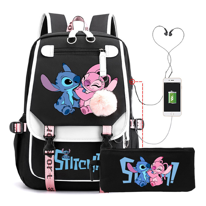 Cross border hot selling anime backpack, interstellar baby, cute cartoon backpack, USB casual student zipper pencil case set