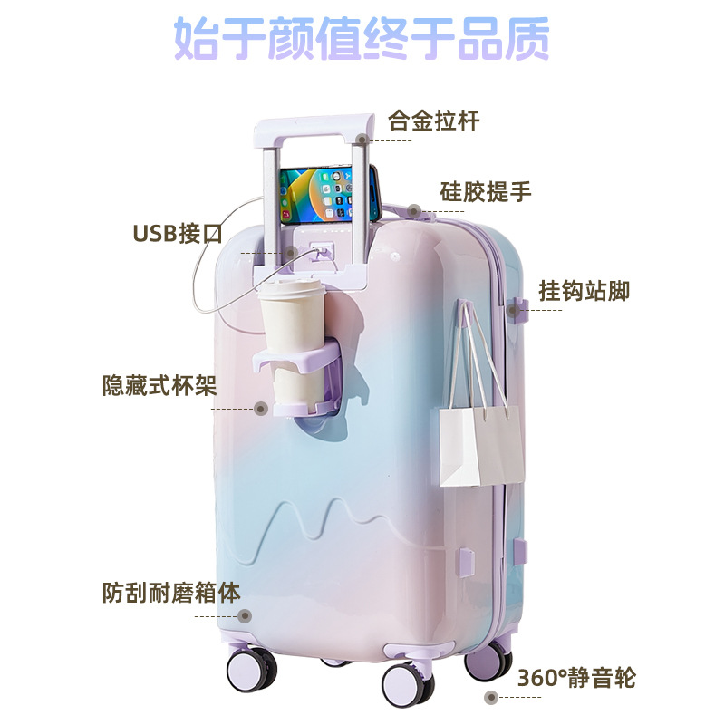 Luggage, women's gradient ice cream style suitcase, high aesthetic value, durable, female student, large capacity, password, travel boarding case