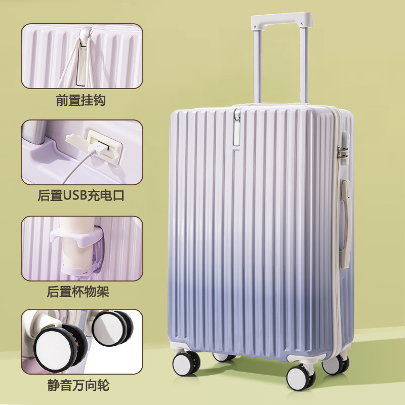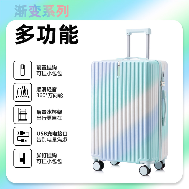 Gradient color suitcase for women with high looks, internet celebrity suitcase, 28 large capacity student password travel leather suitcase, 26 inches