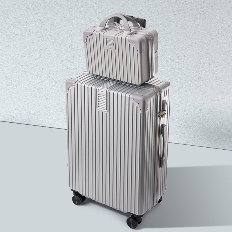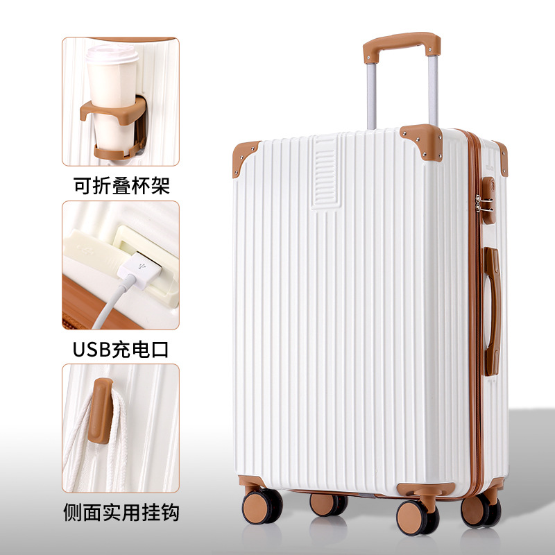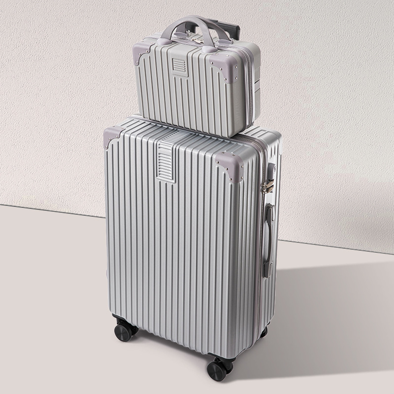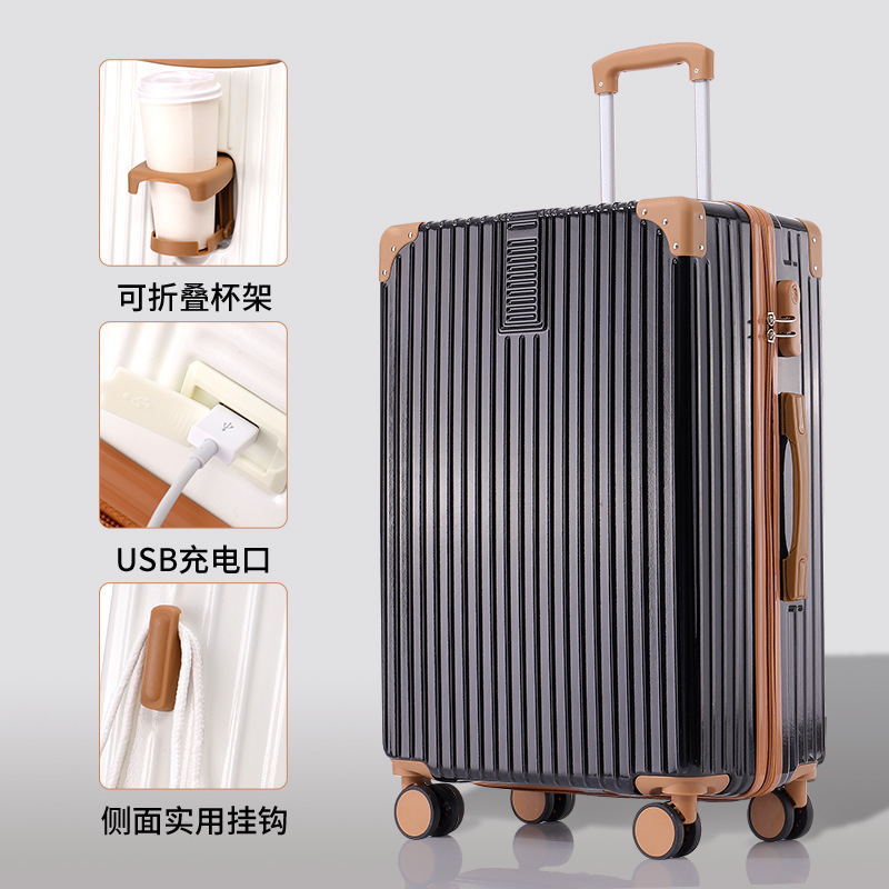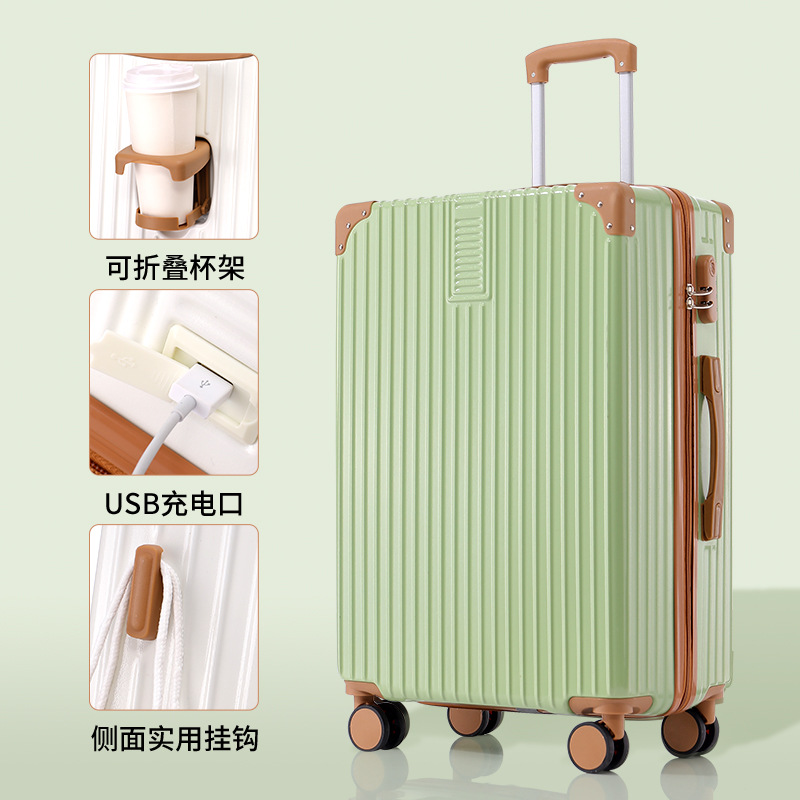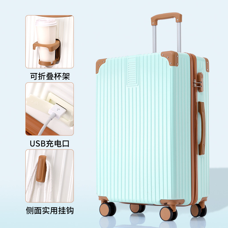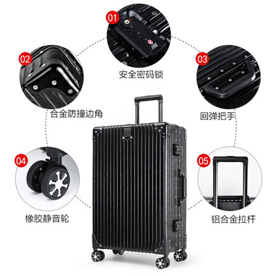 Retro right angle luggage with aluminum frame, 24 universal wheels, men's large capacity password luggage, leather suitcase, women's 20 inch boarding travel