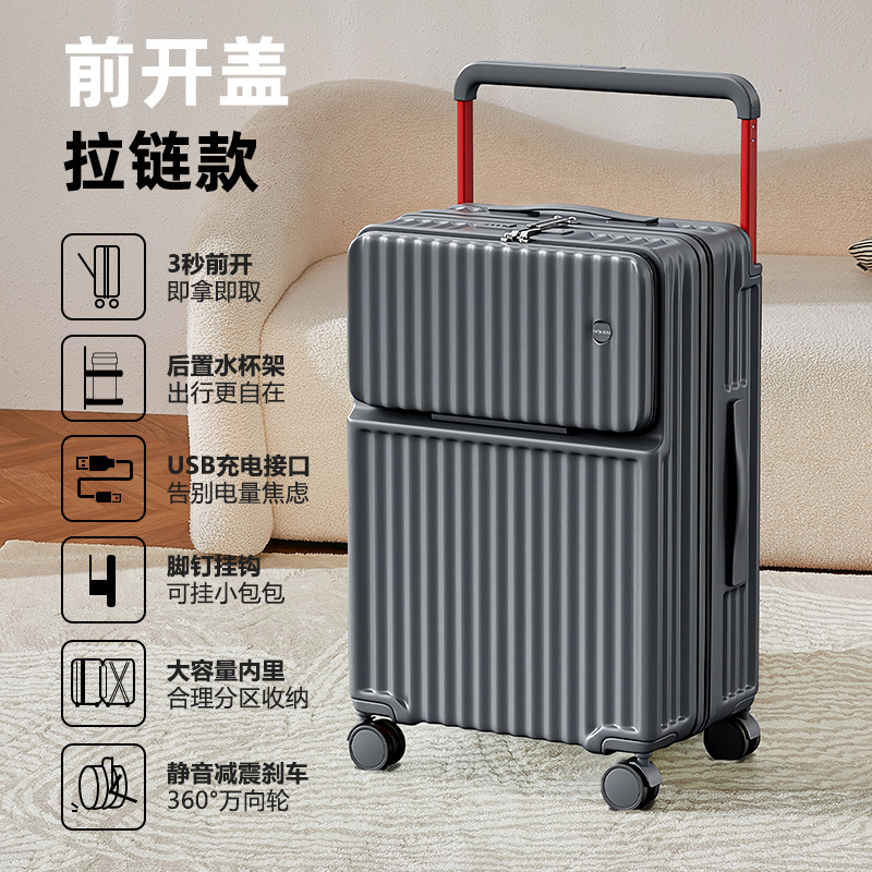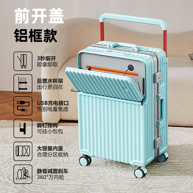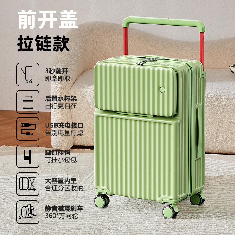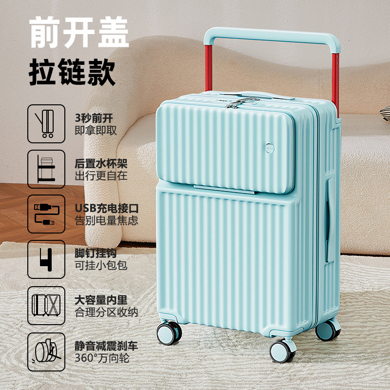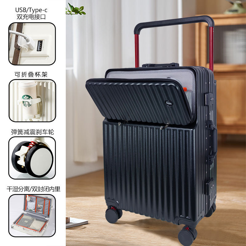 Wide pull rod front opening multifunctional luggage compartment for women, 20 inches high appearance, front opening travel, silent universal wheel