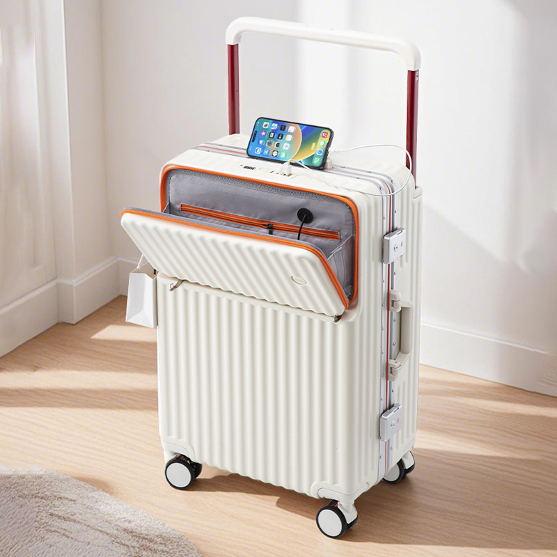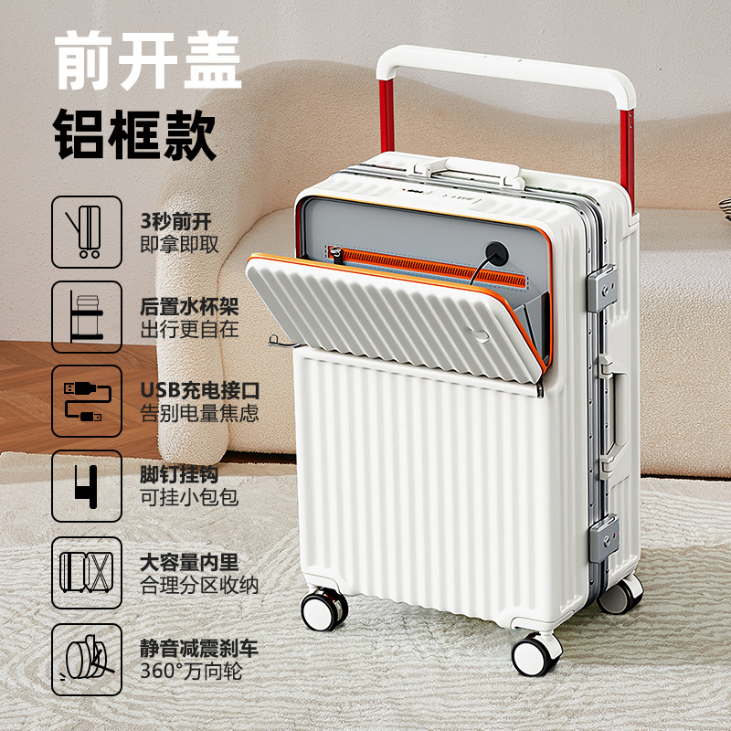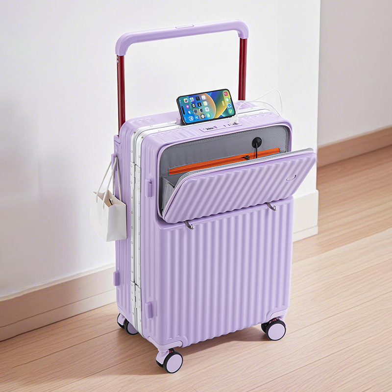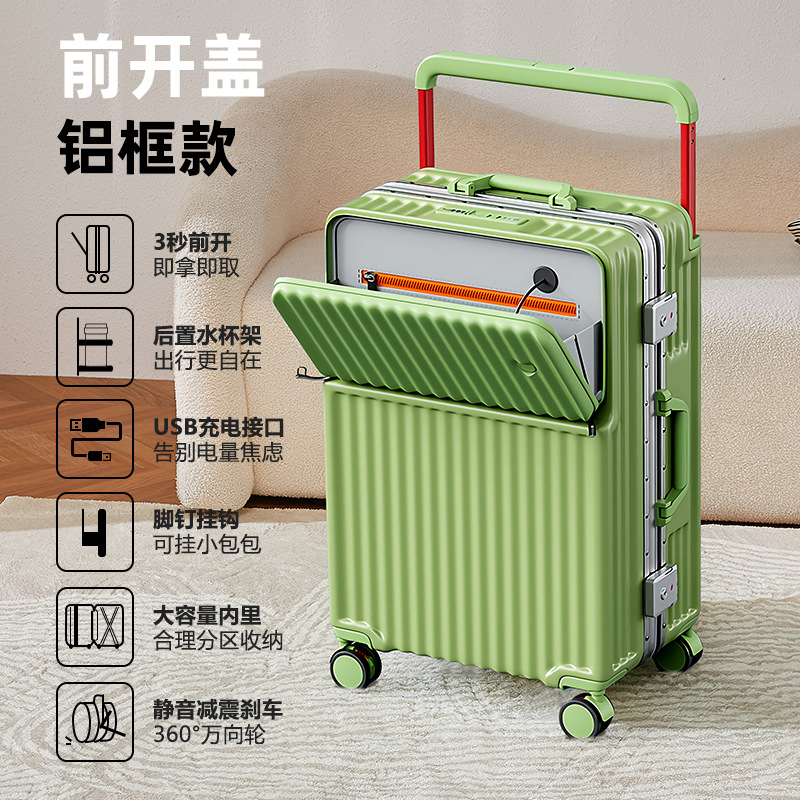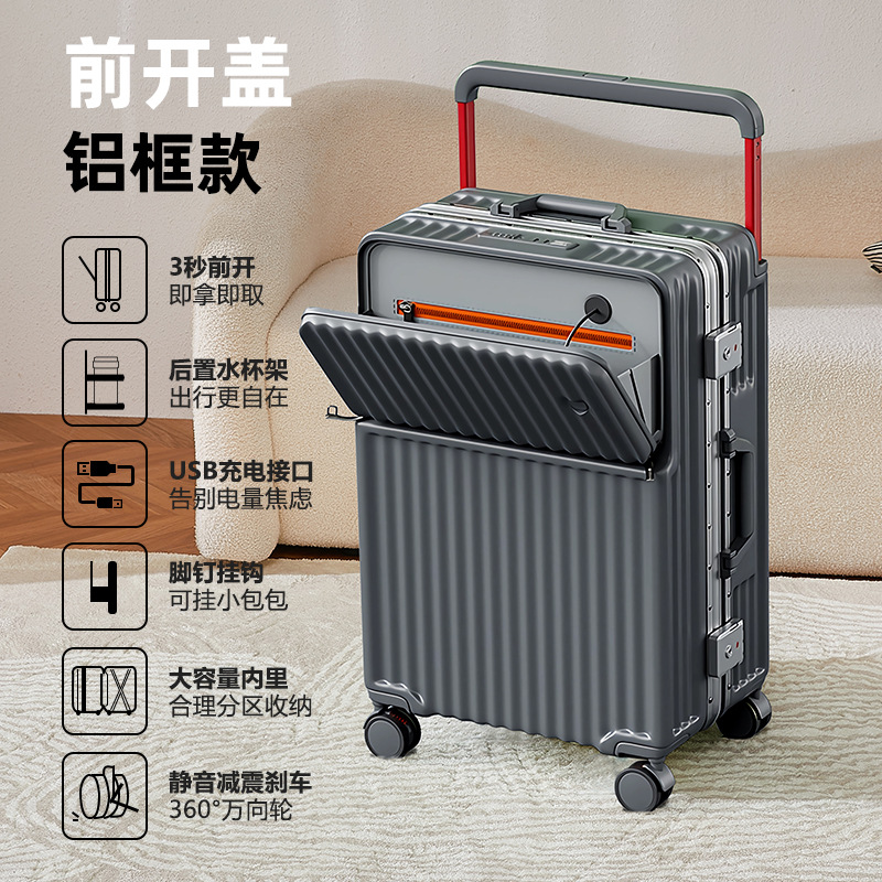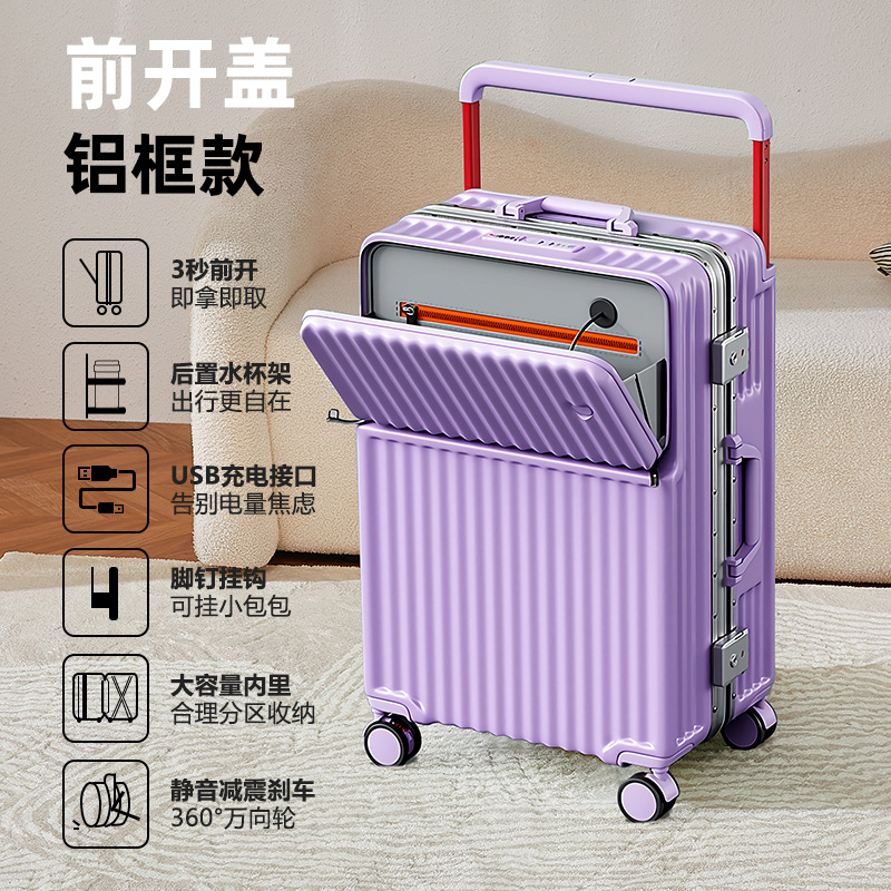 Wide pull rod front opening multifunctional luggage compartment for women, 20 inches high appearance, front opening travel, silent universal wheel