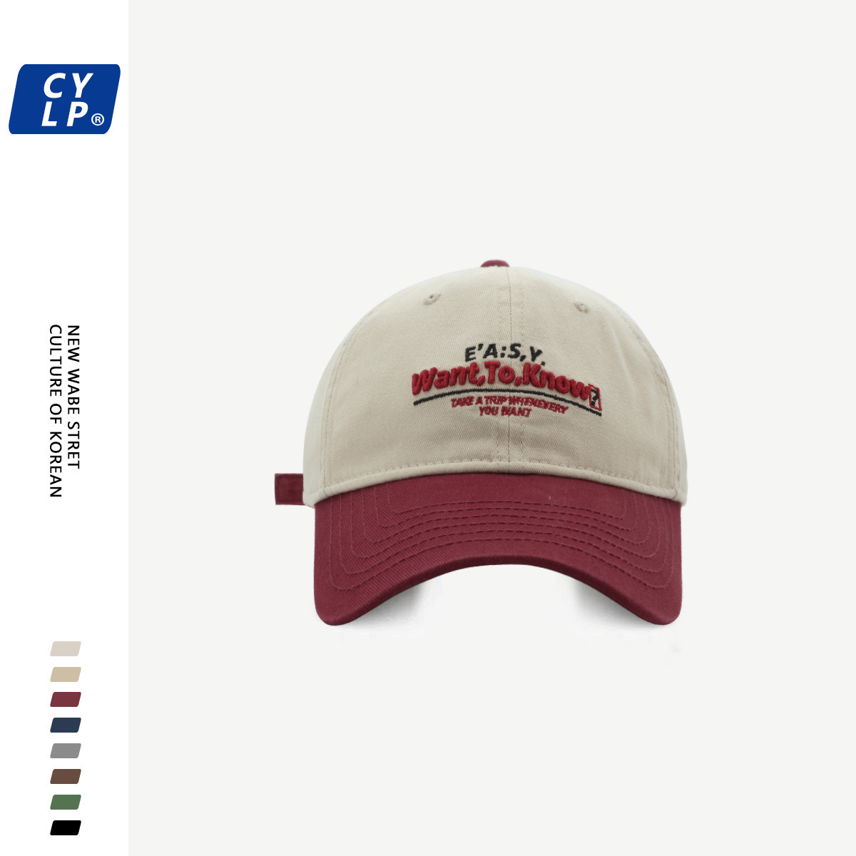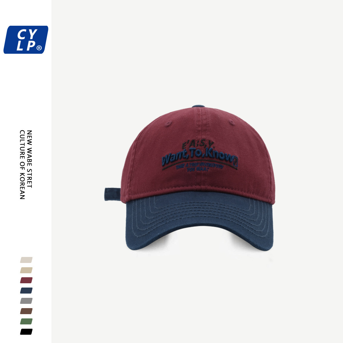 New Korean trendy letter embroidered baseball cap for both men and women, street fashion contrasting color Korean version versatile duckbill cap
