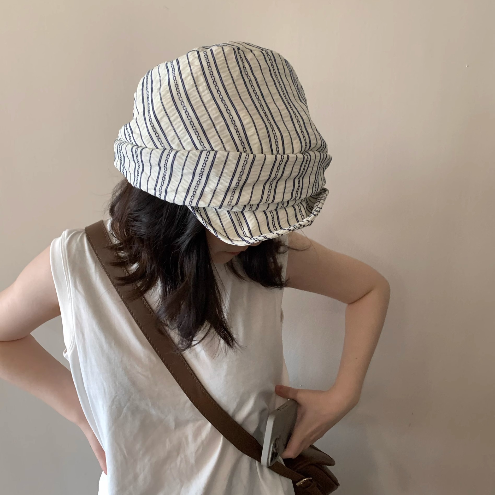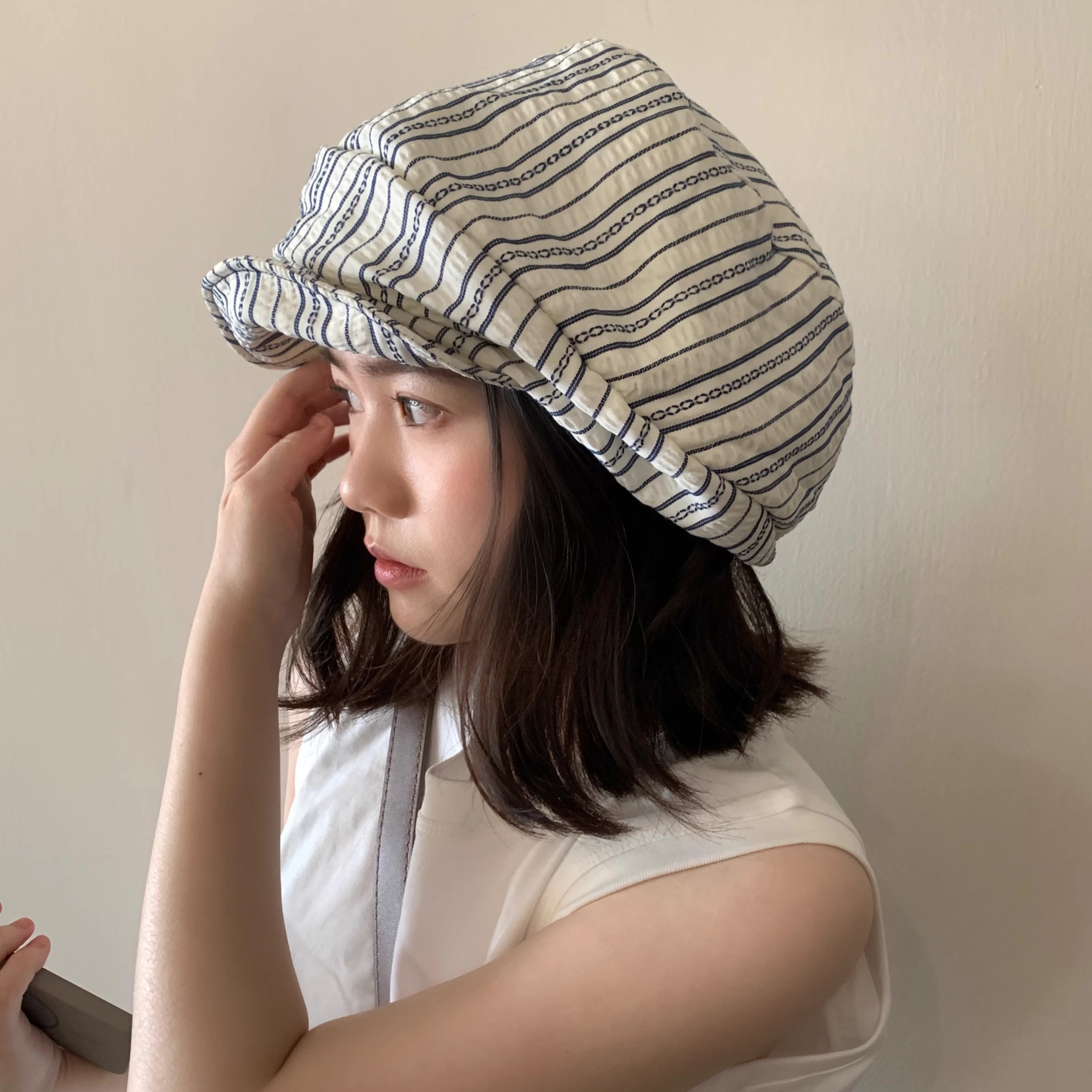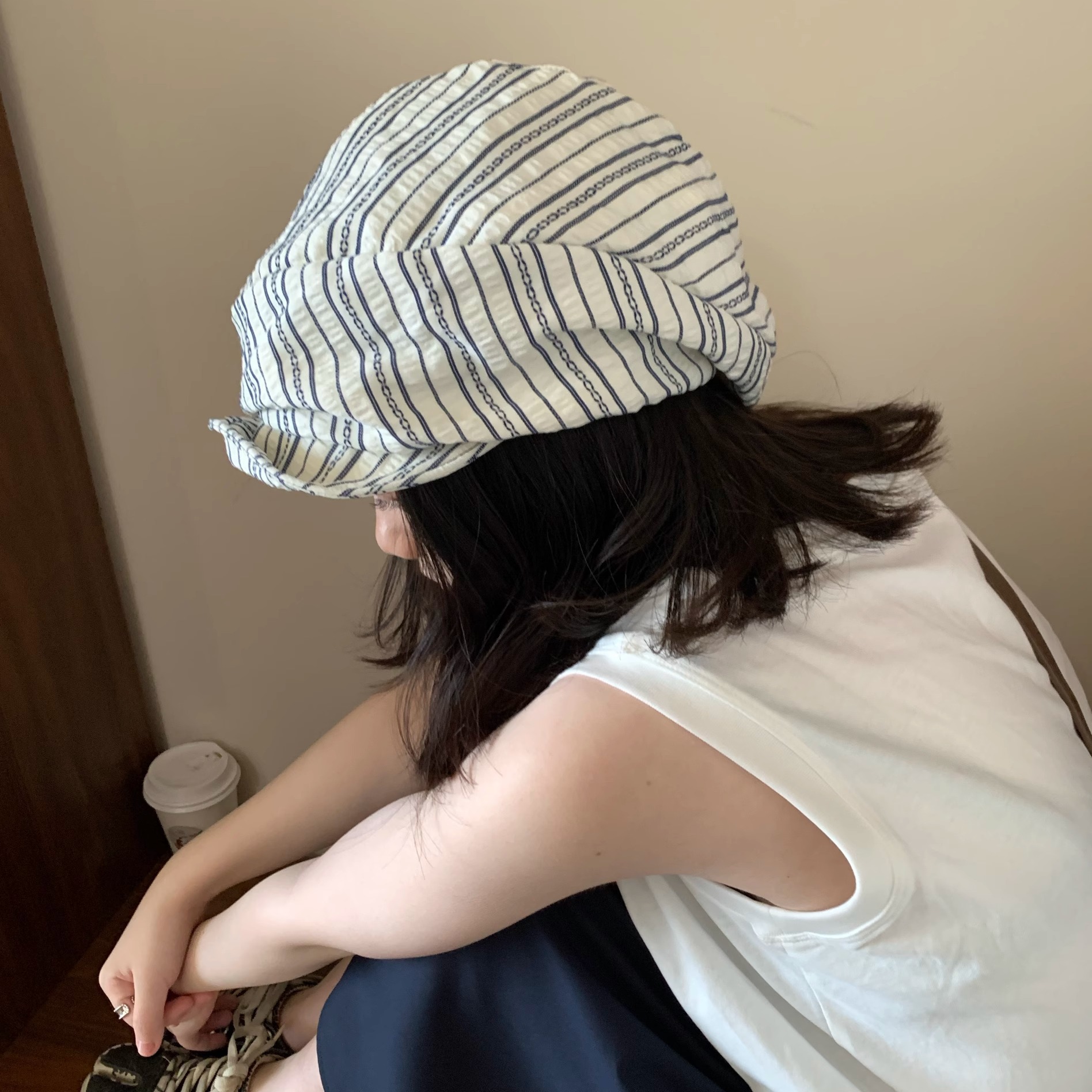 【 Osaka Memory 】 Japanese designer's cloud newspaper children's hat, women's retro fashionable big head circumference striped octagonal hat