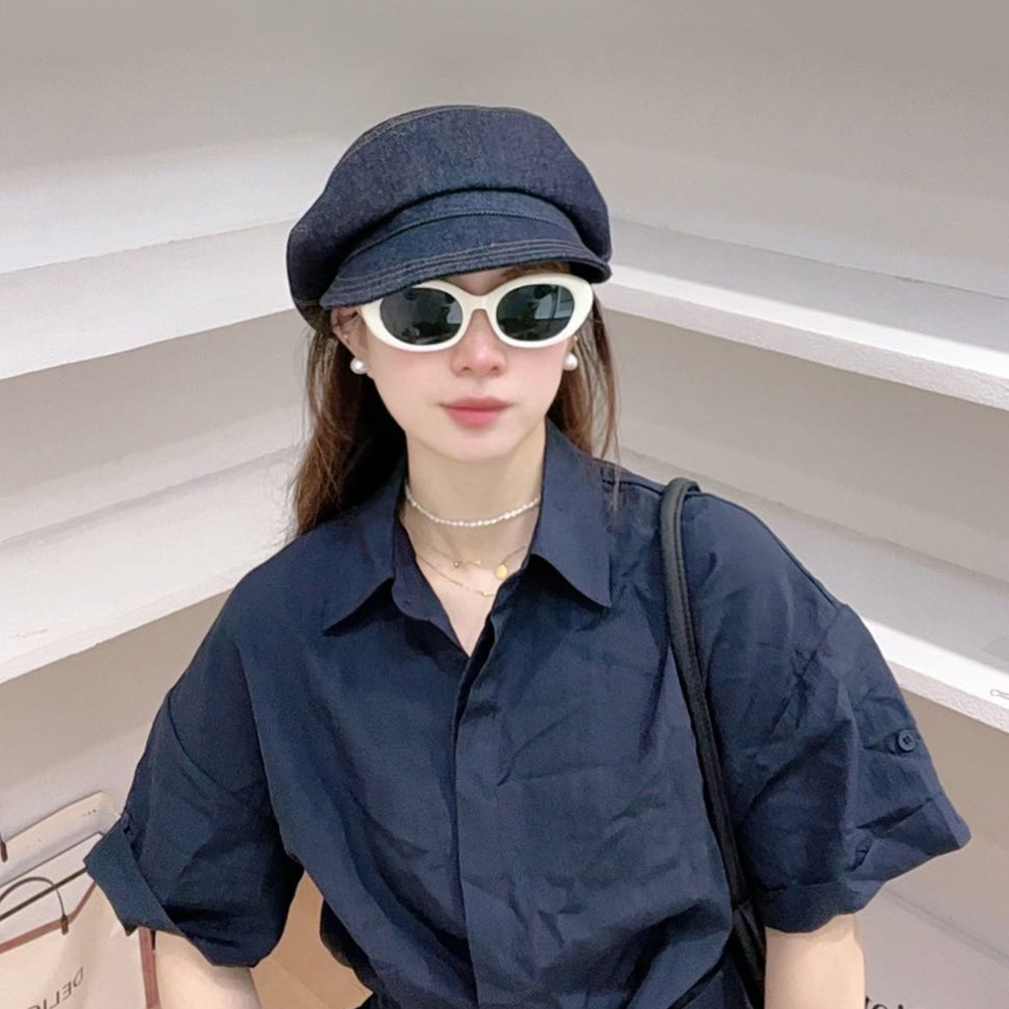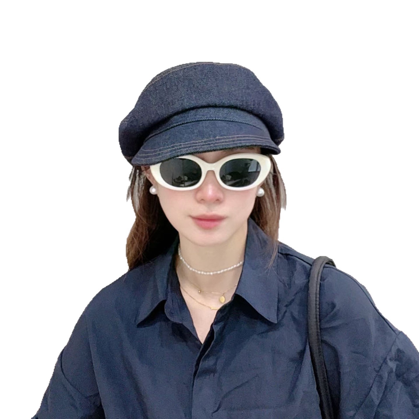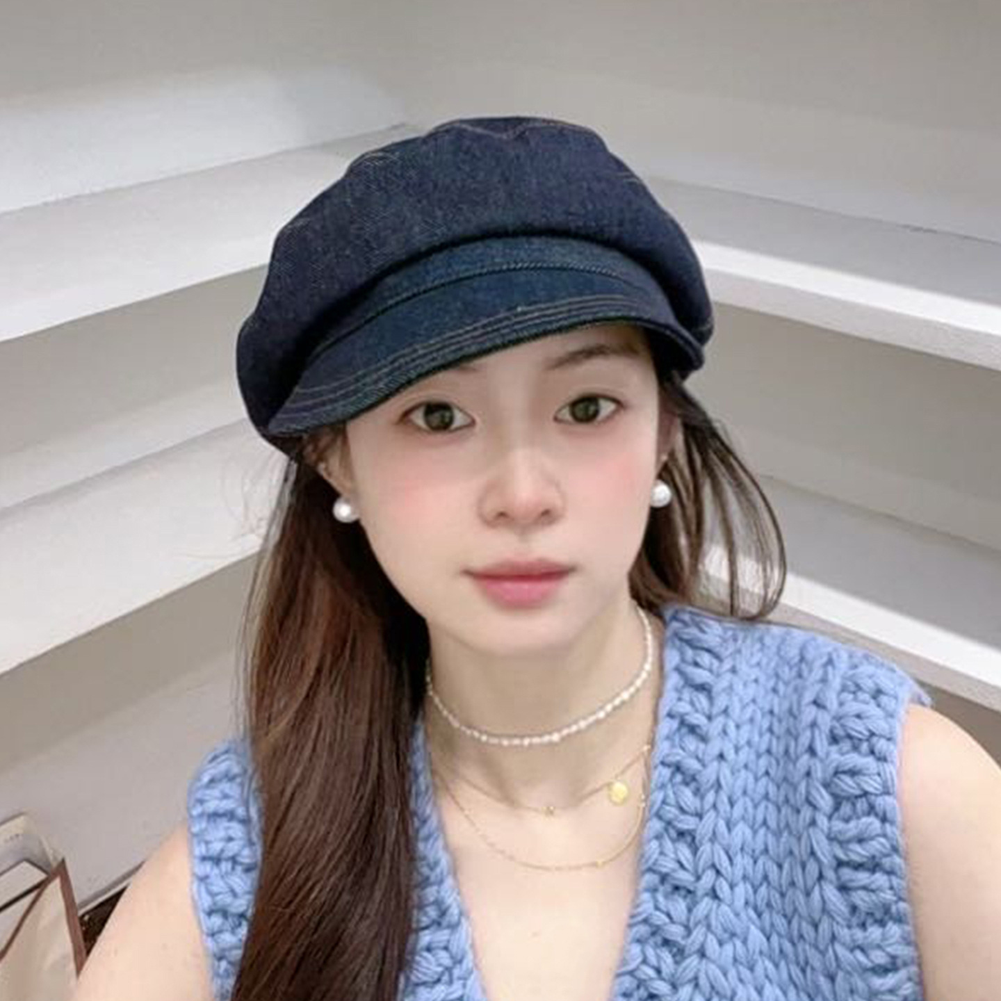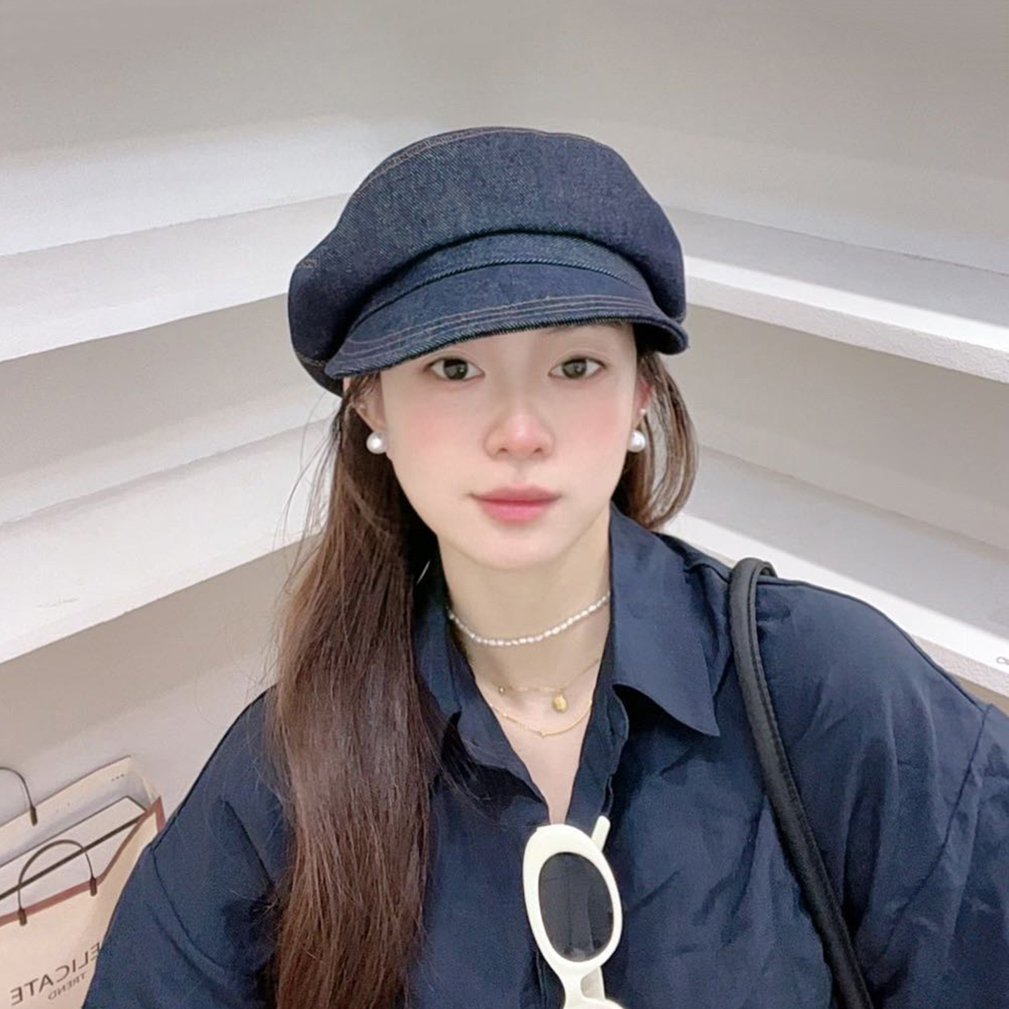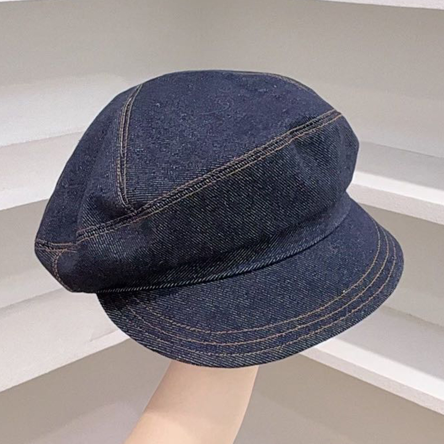 Japanese and Korean designer's denim octagonal hat for women with a spring and autumn temperament, a versatile duckbill hat for newsboys, and a small artist who can show off their face