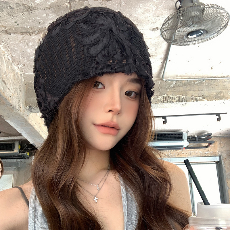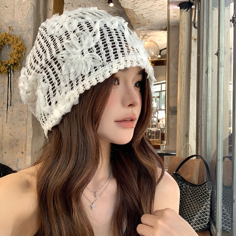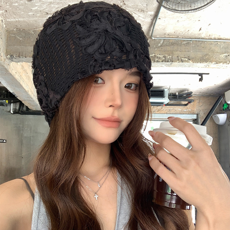 Spring and summer new Korean version three-dimensional flower head cap for women, fashionable hollow out breathable thin design, big head circumference, cold hat pile cap