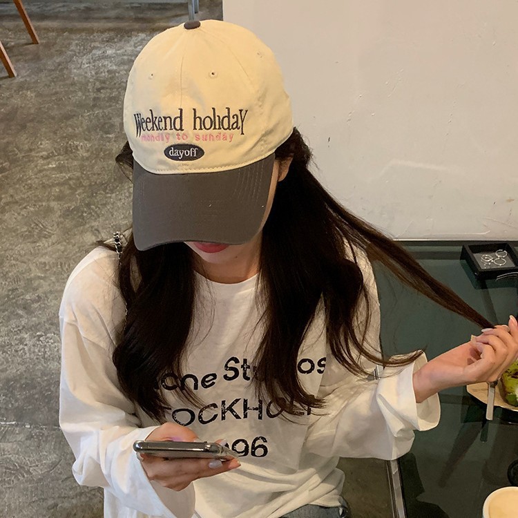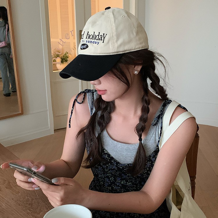 Korean ins baseball cap embroidered with black and white letters, contrasting colors to show off face, small duckbill cap for children 2024 new model