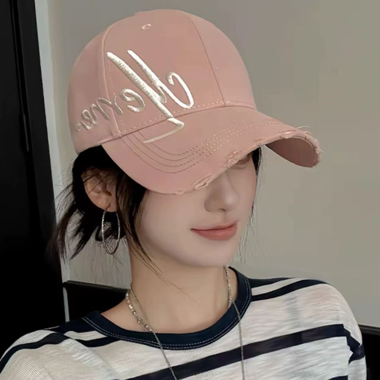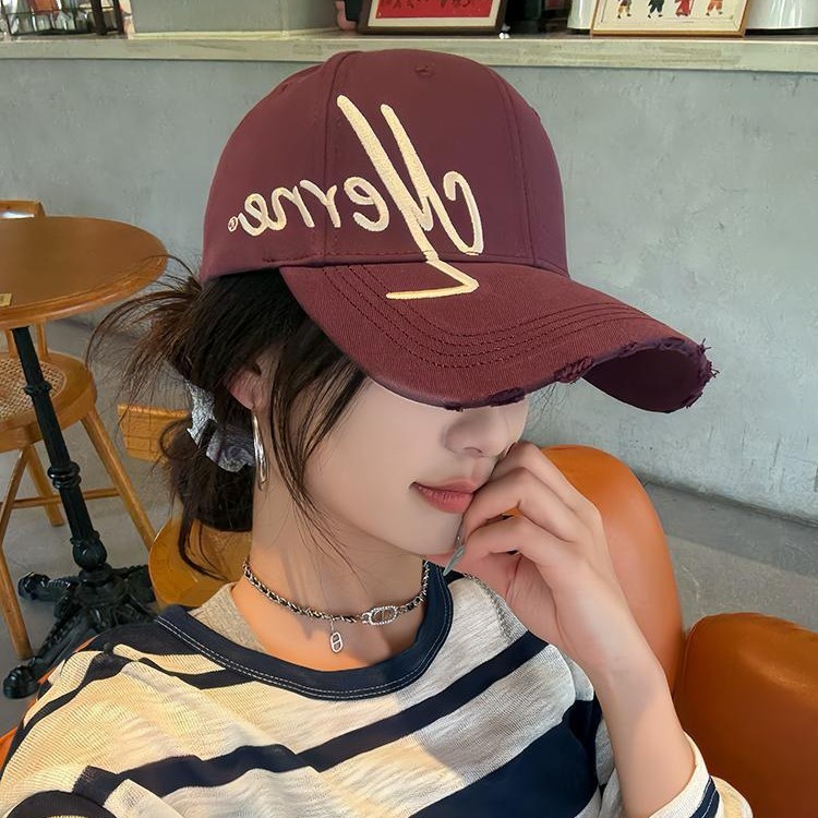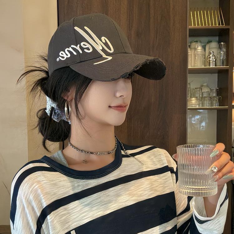 New hat for women, embroidered baseball cap with big head circumference, wide brim, sun protection, face recognition, small trendy brand, hardtop duckbill cap for men
