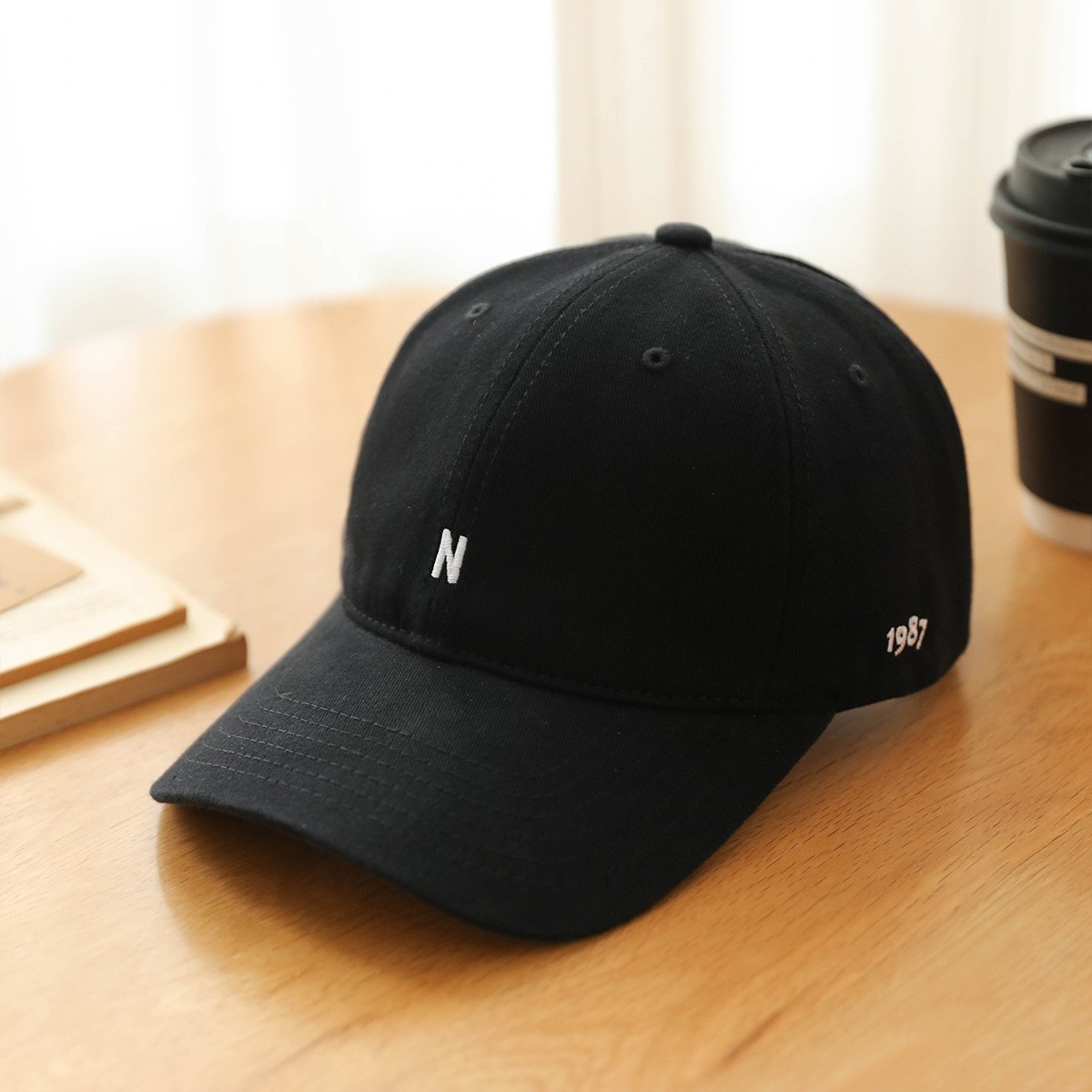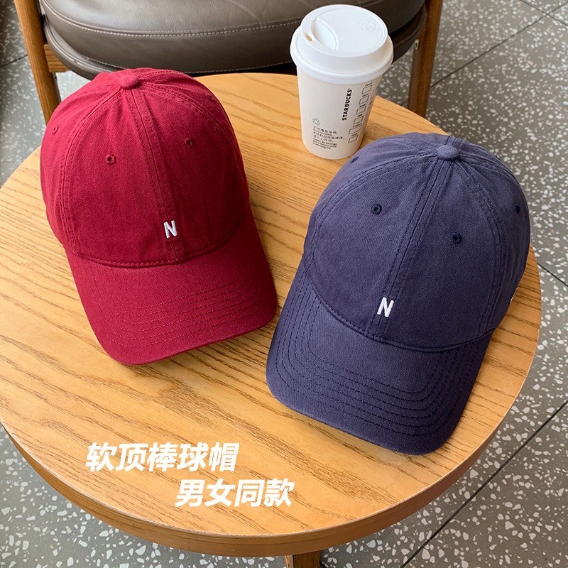 Japanese soft top baseball cap, simple and versatile, embroidered with small letters, duckbill cap with wide brim to show off face, small sports hat for men and women