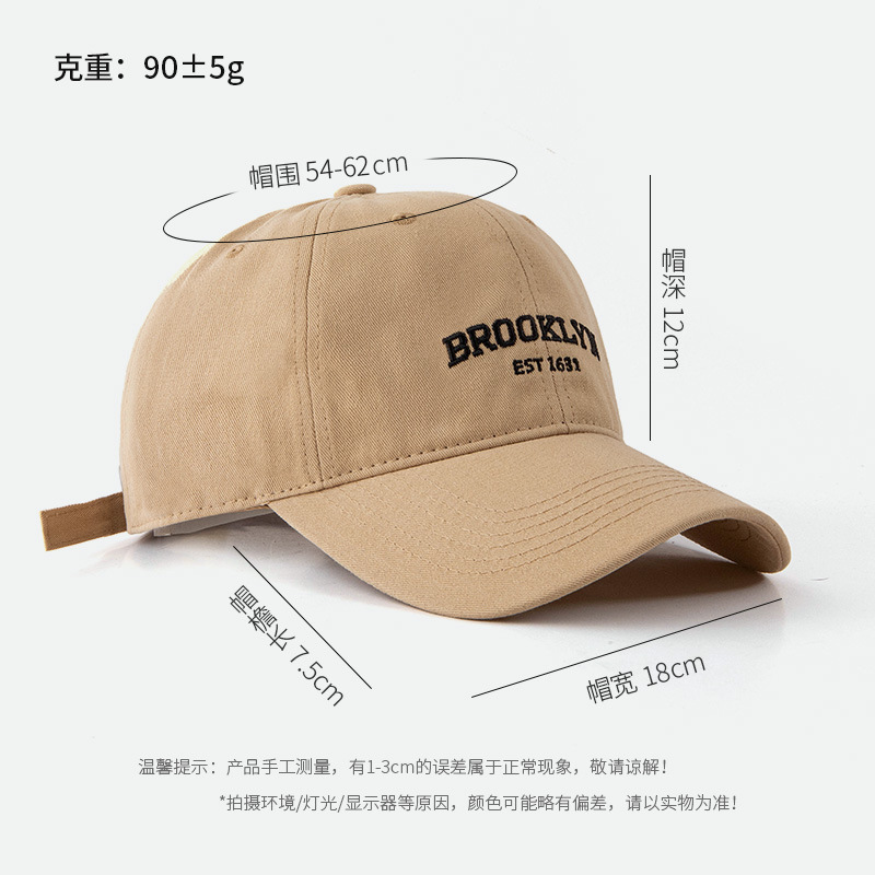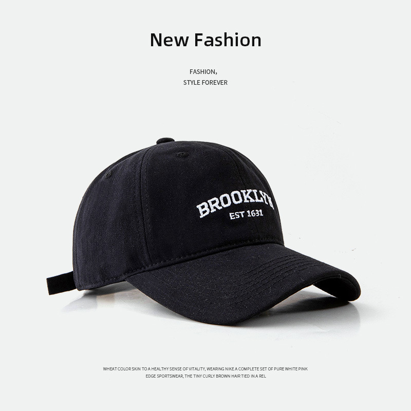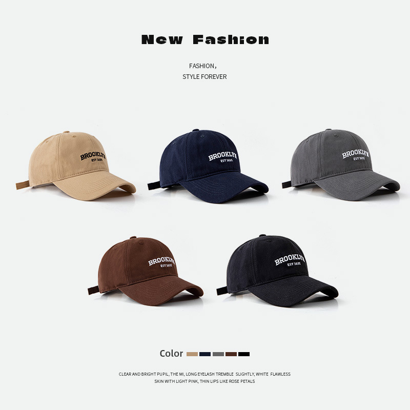 Korean style trendy new canvas baseball cap for both men and women, wide brim for a small face, soft top embroidered duckbill cap, versatile for summer