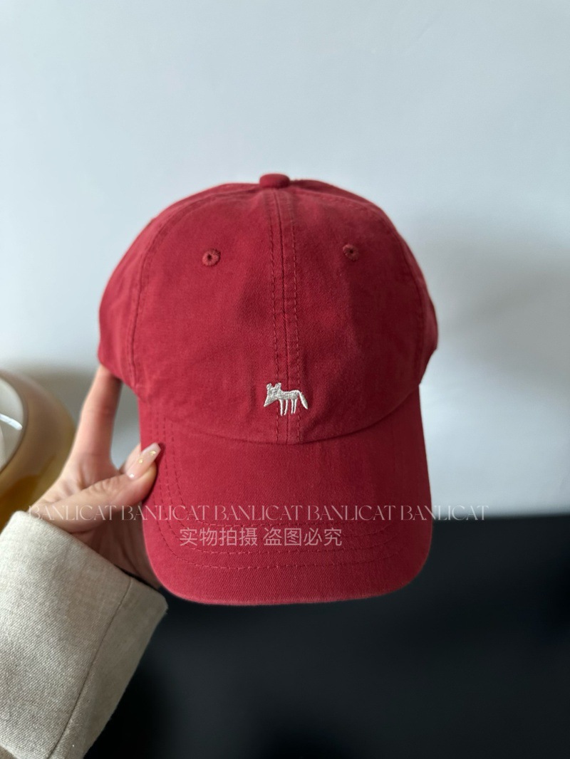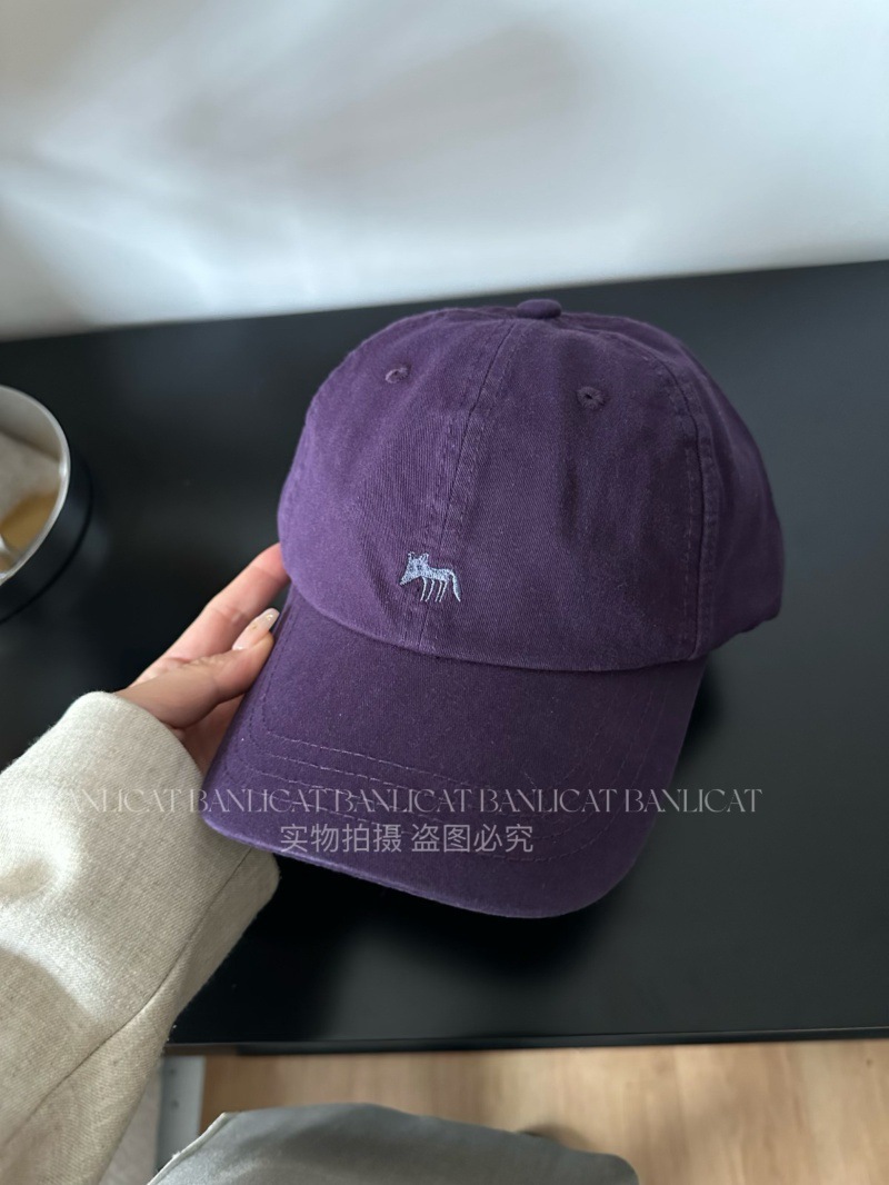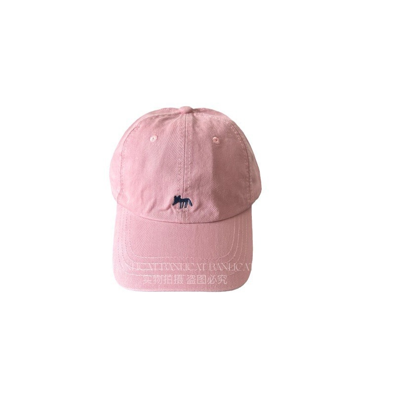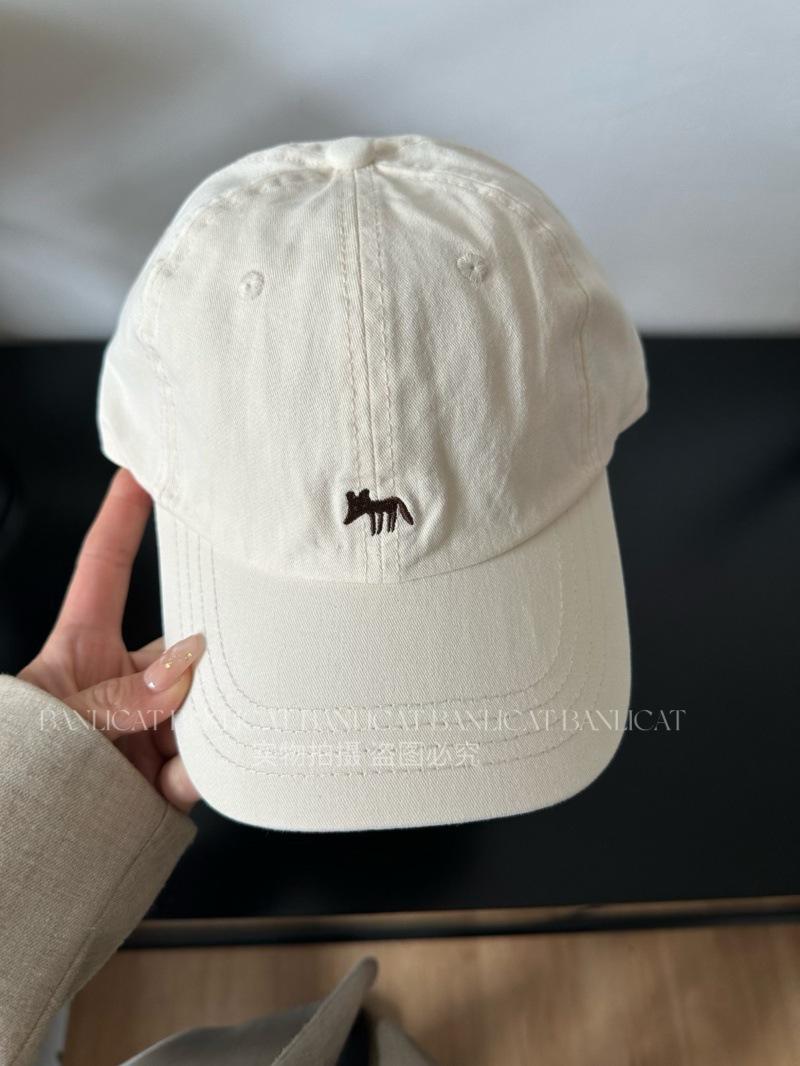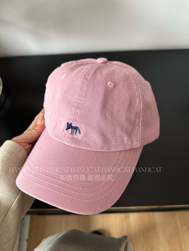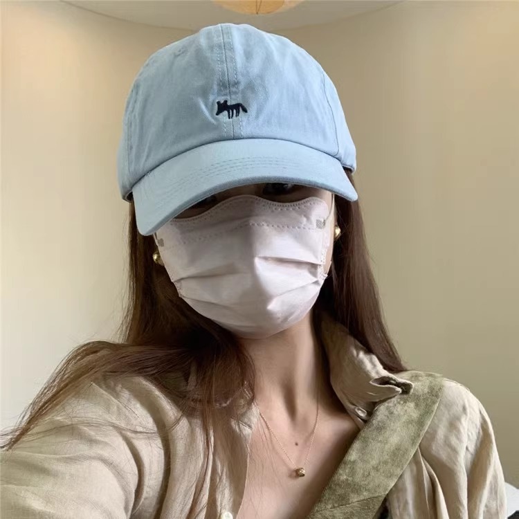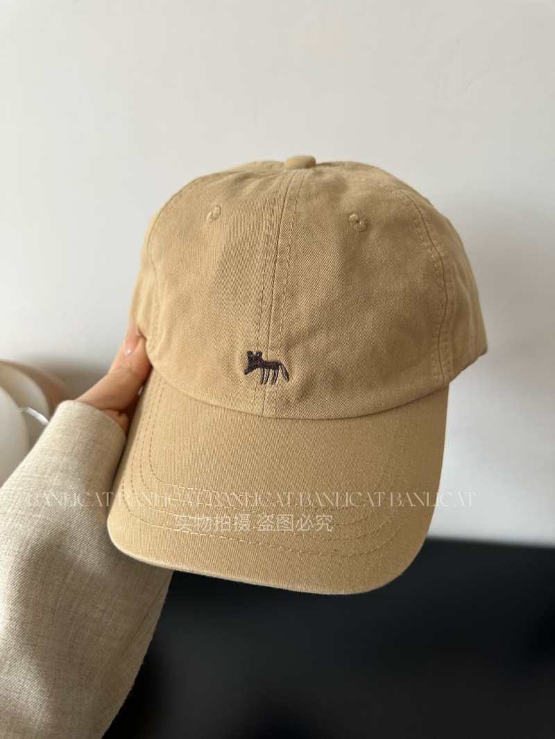Korean Order Four Seasons Embroidered Fox Cotton Baseball Hats Men's and Women's Wide brims Show Face Small Duck Tongue Hats Sunshade