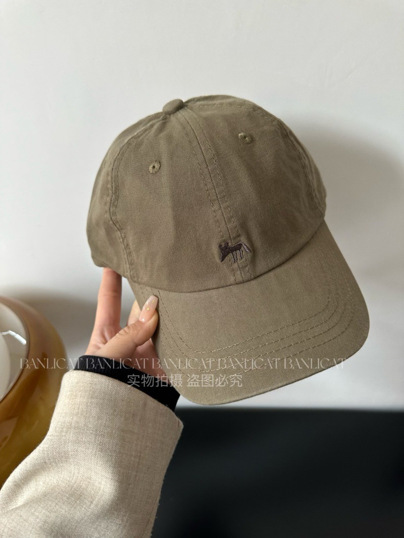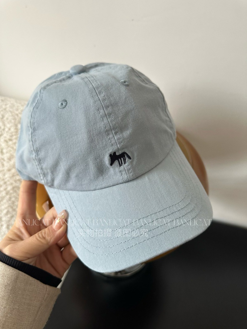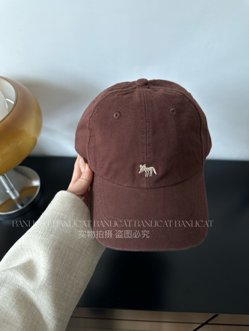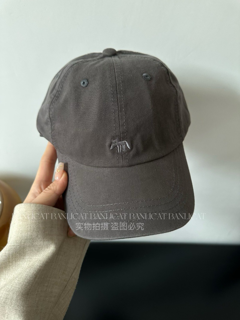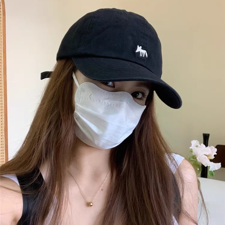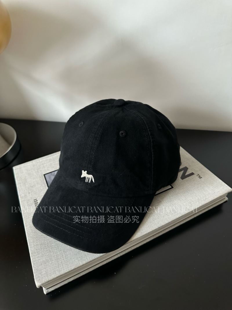 Korean Order Four Seasons Embroidered Fox Cotton Baseball Hats Men's and Women's Wide brims Show Face Small Duck Tongue Hats Sunshade