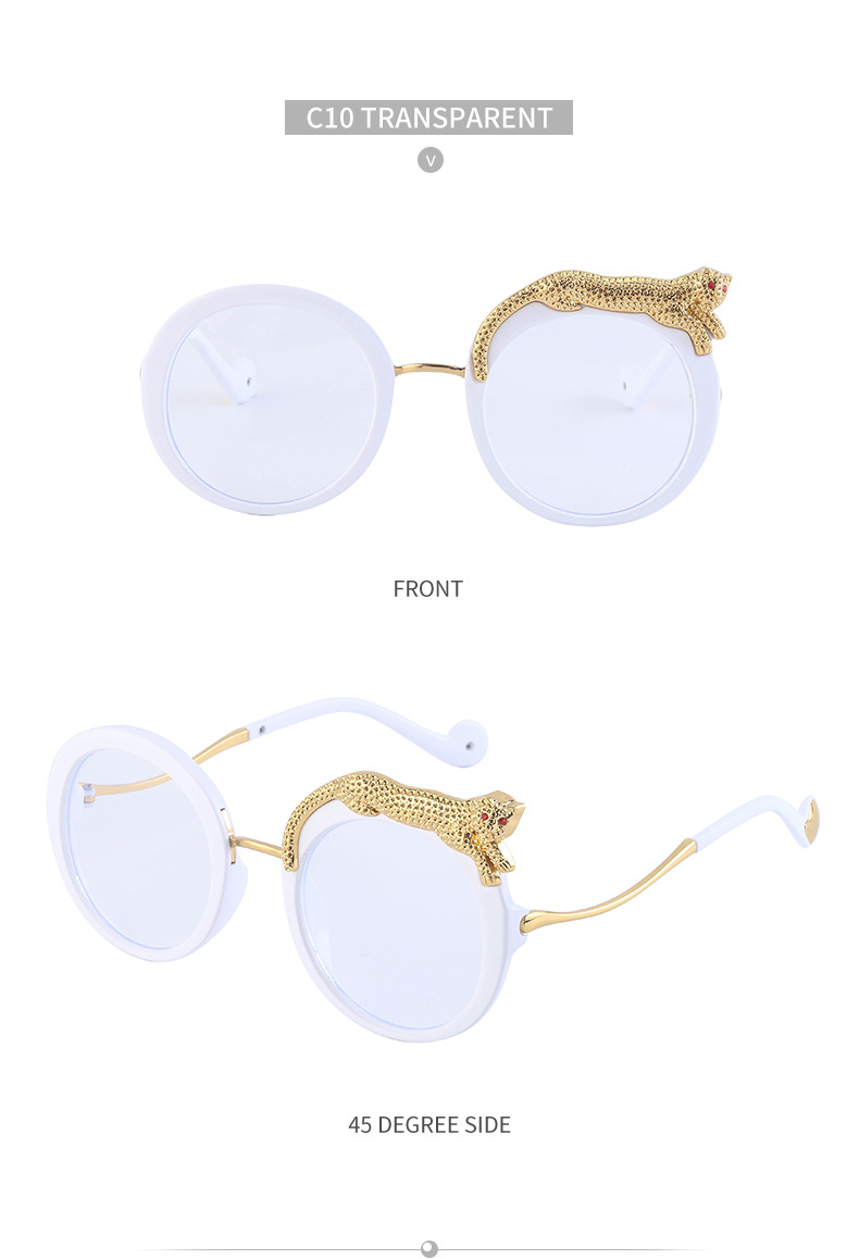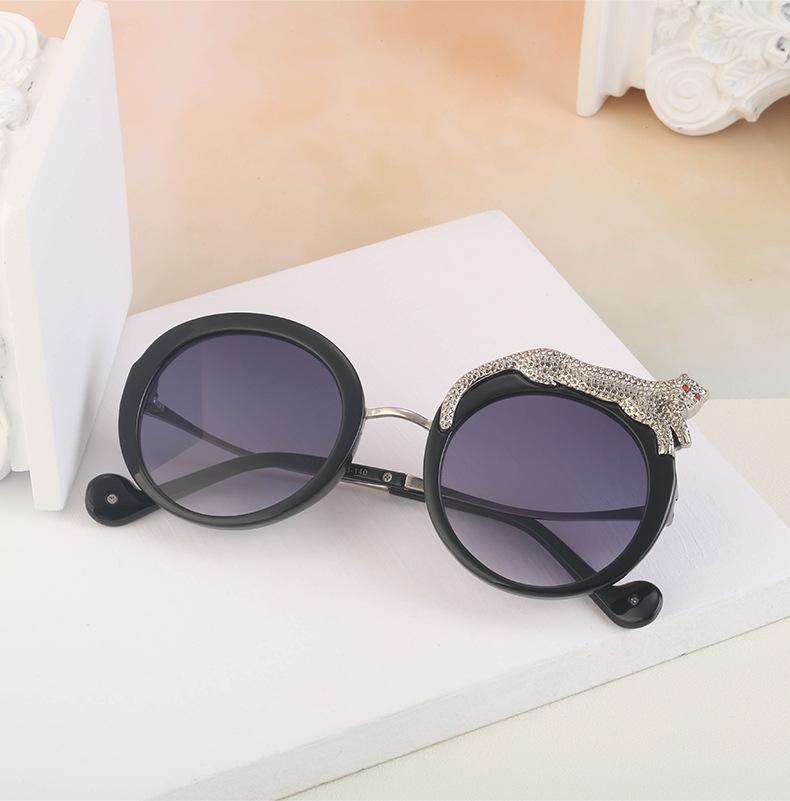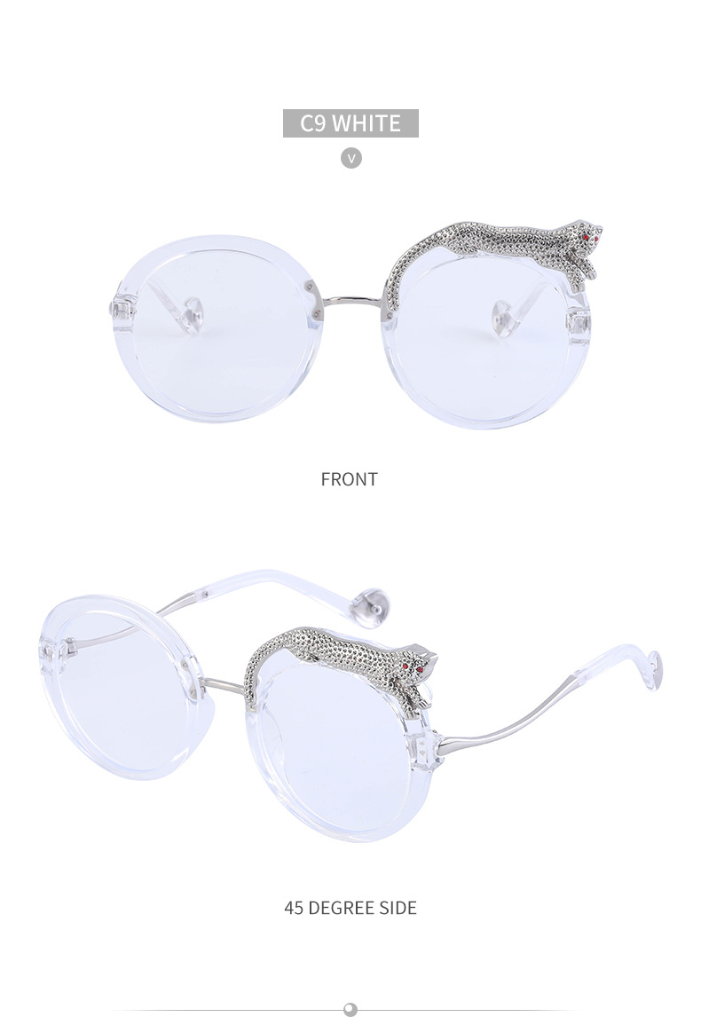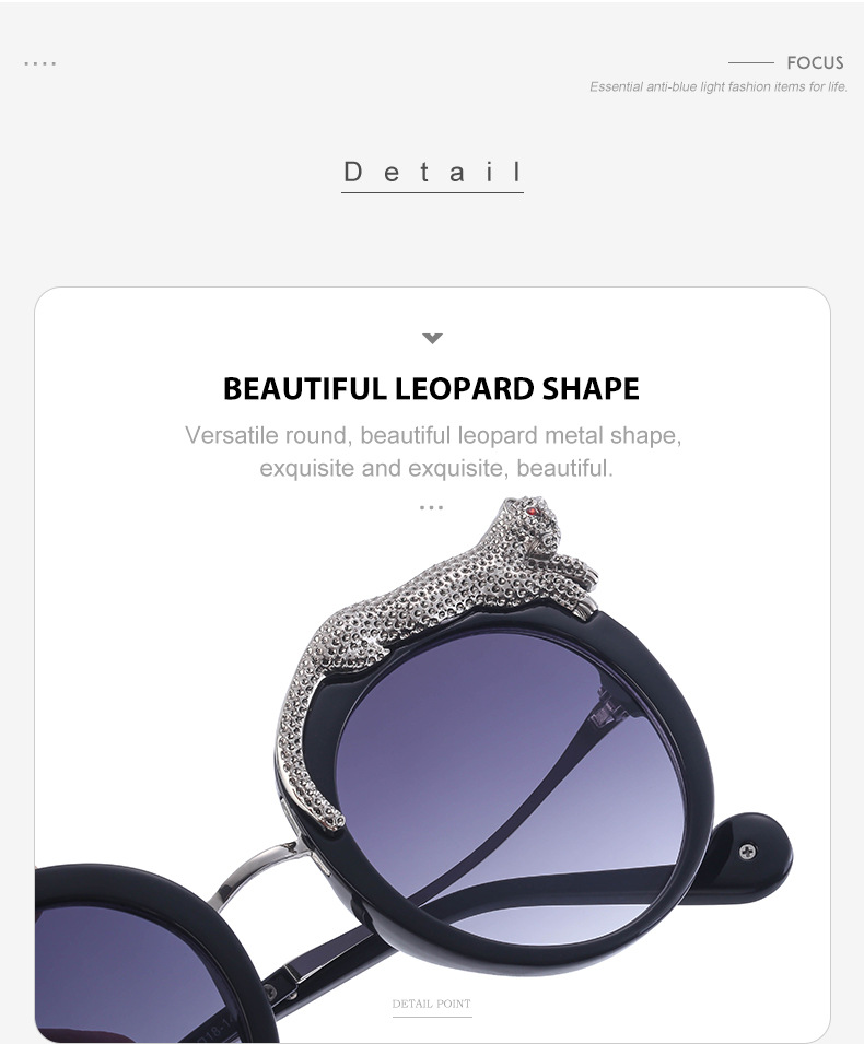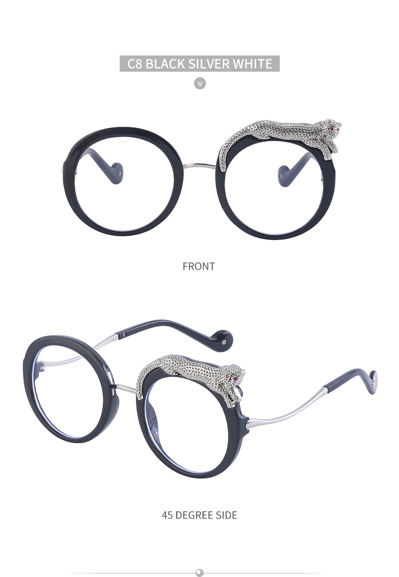 2025 new anti blue light glasses for women, leopard head with diamond studded European and American round frame sunglasses, trendy large frame sunglasses, high-end feel