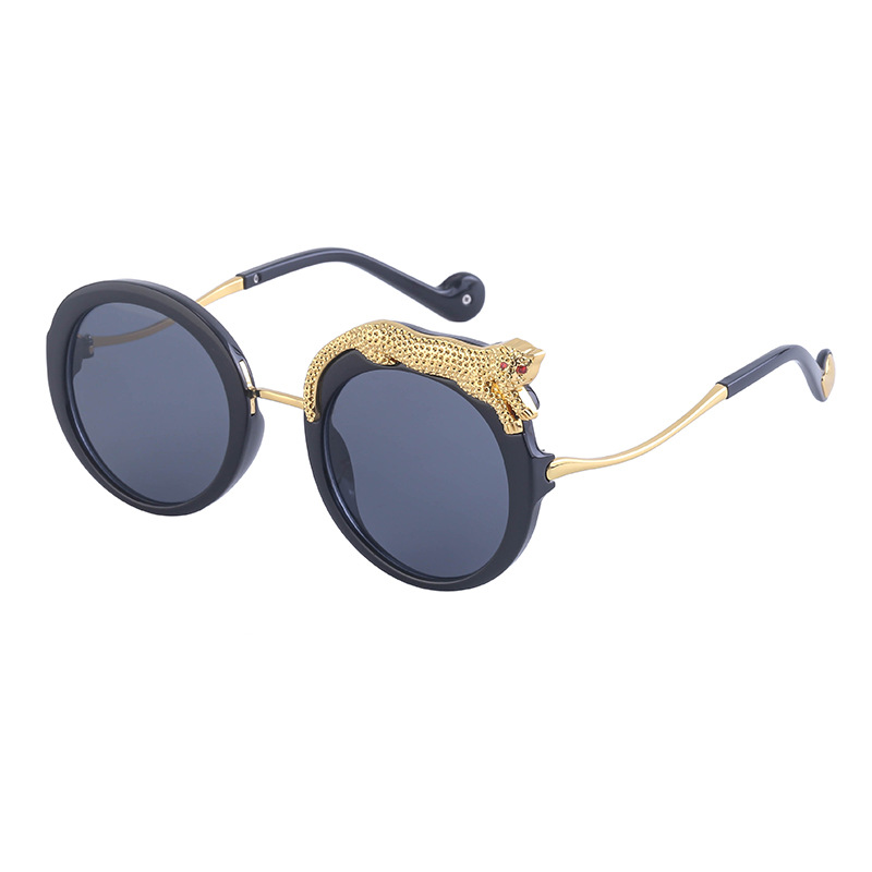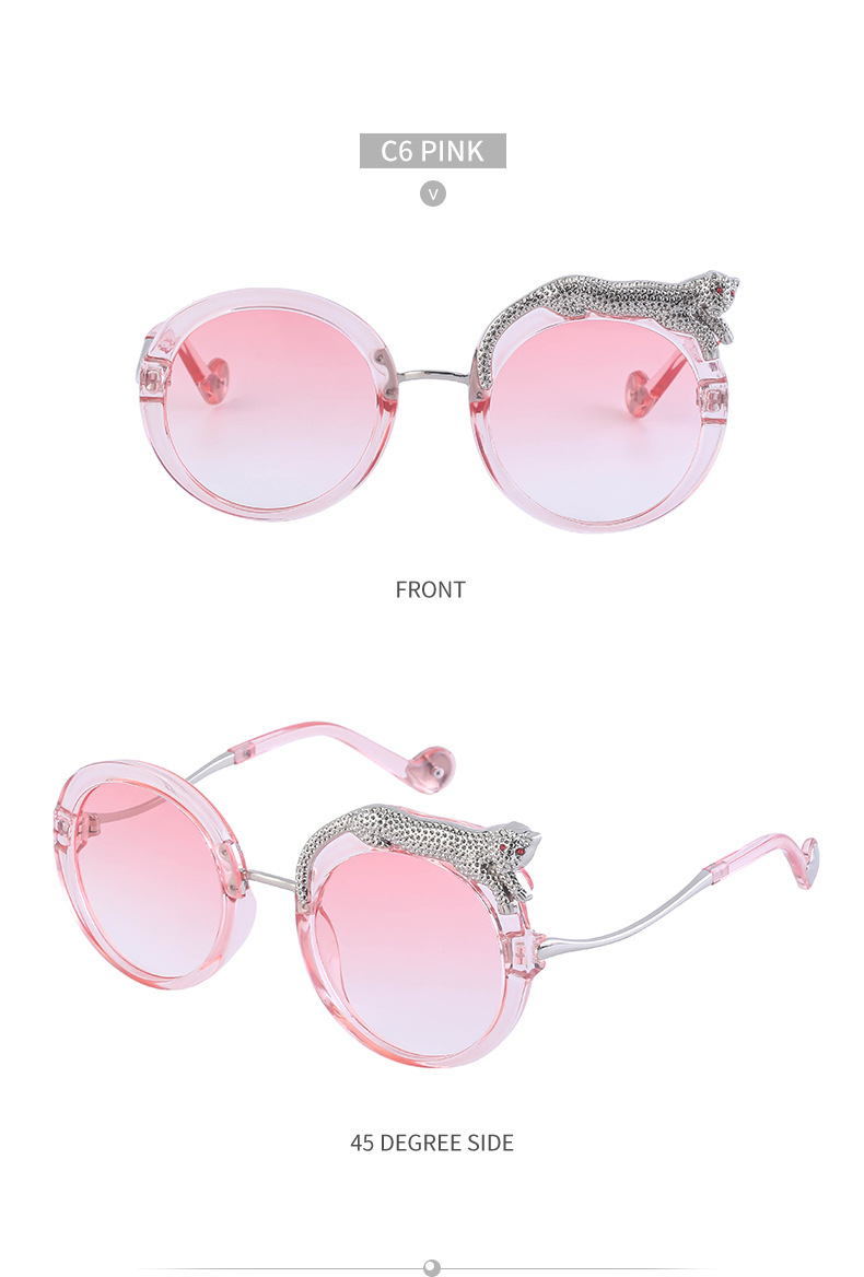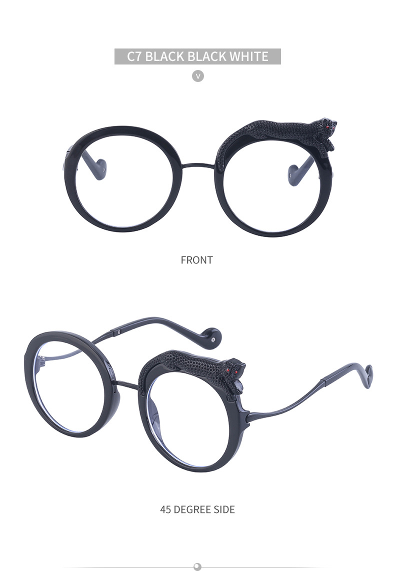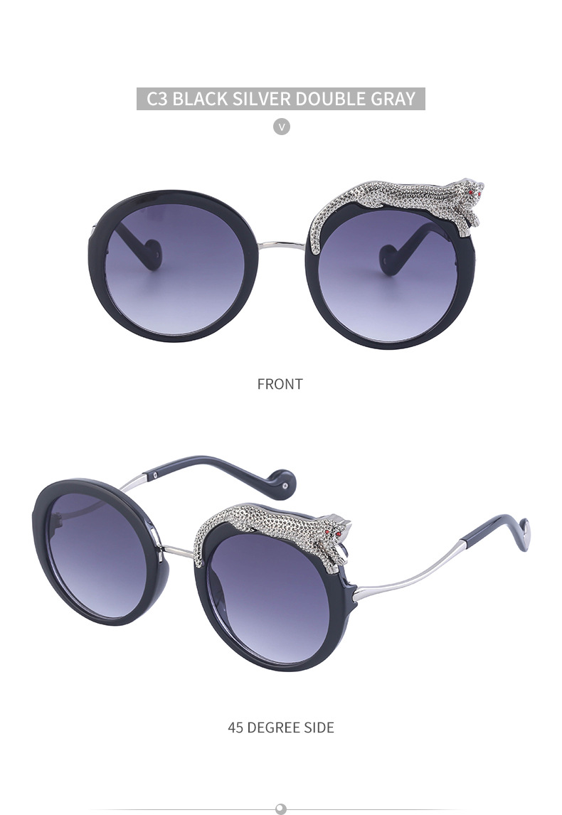 2025 new anti blue light glasses for women, leopard head with diamond studded European and American round frame sunglasses, trendy large frame sunglasses, high-end feel