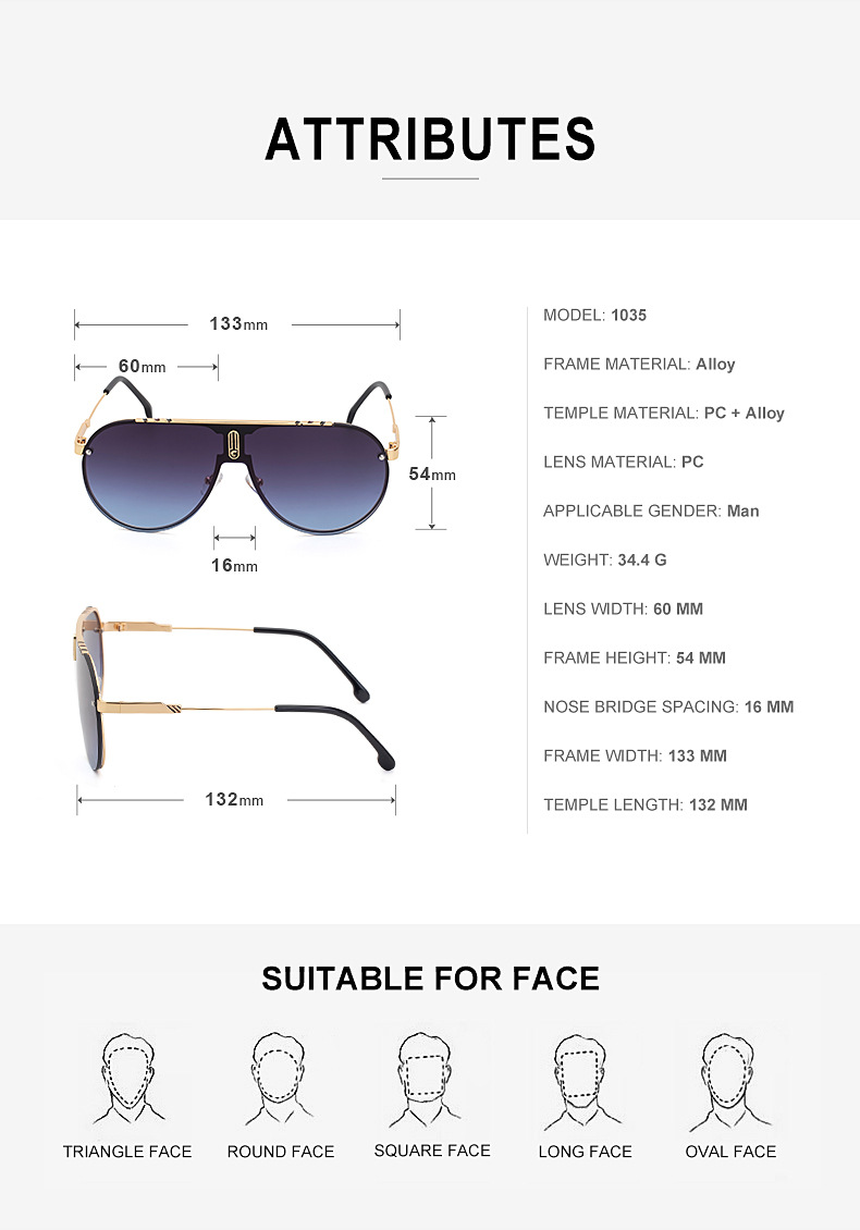 2022 new pilot sunglasses men's 1035 fashionable one-piece sunglasses men's trendy glasses sunglasses