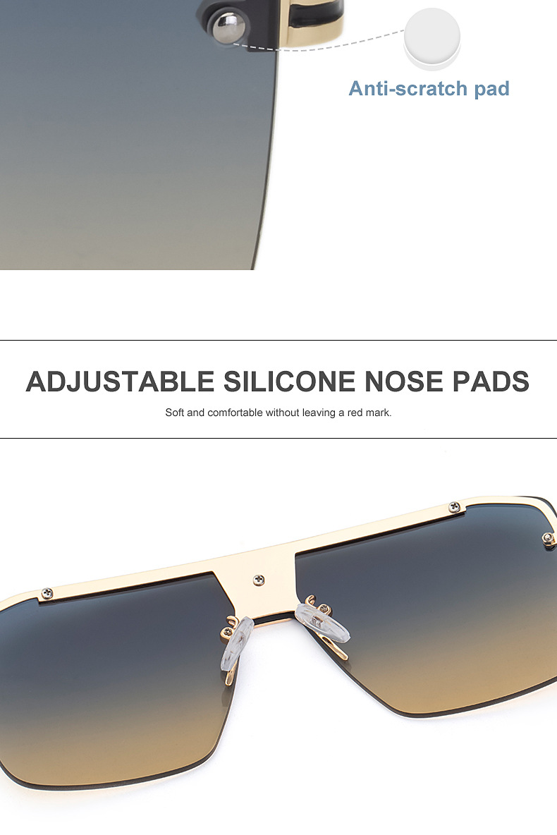 New Large Frame Sunglasses for Men, Trendy and Fashionable Street Photography, Square Sunglasses, Retro Frameless Sunglasses