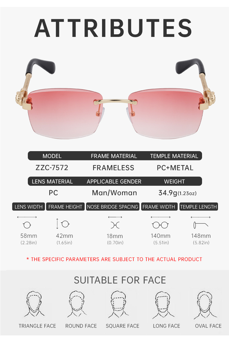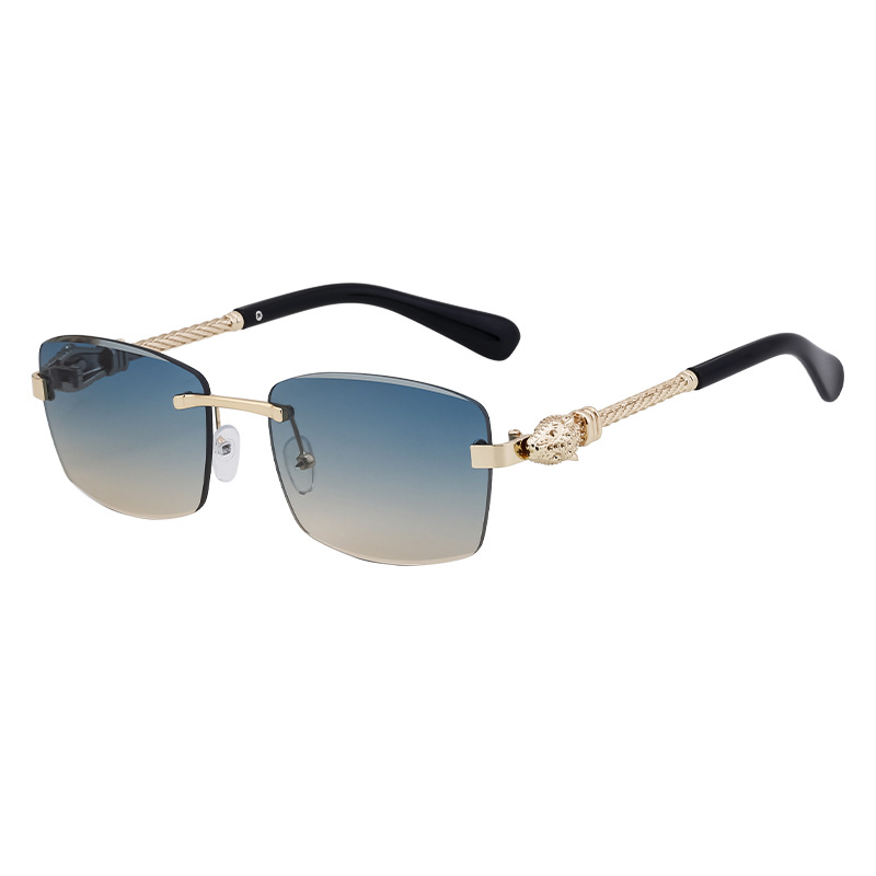 Leopard head frameless sunglasses for men, retro and high-end European and American sunglasses, fashionable and trendy sunglasses