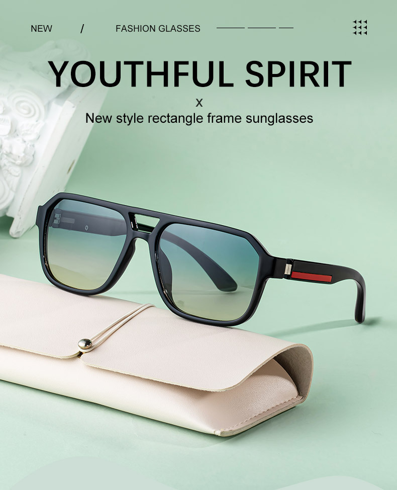 2025 New European and American Fashion Box Sunglasses for Men, Personalized Double Beam Luxury Outdoor Sunscreen Sunglasses for Men