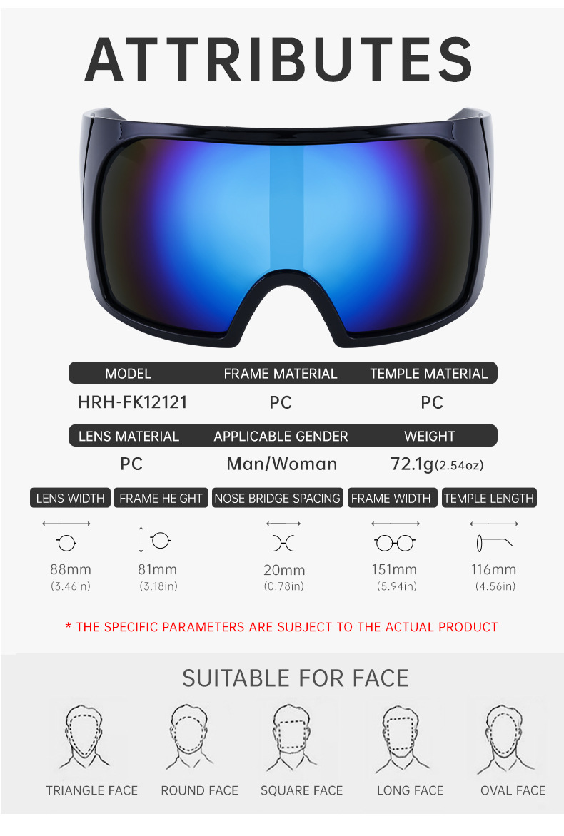 Punk style outdoor cycling large frame sunglasses, men's trendy sports windproof sunglasses, women's cross-border sunglasses, sunglasses