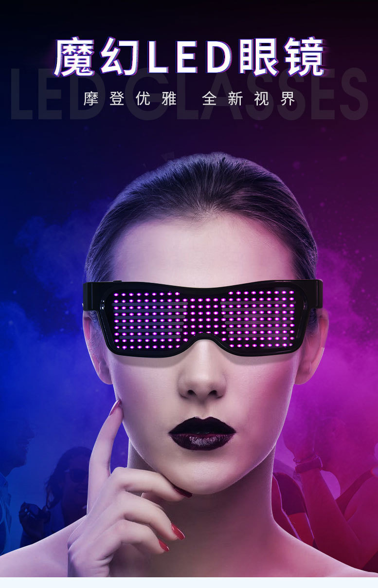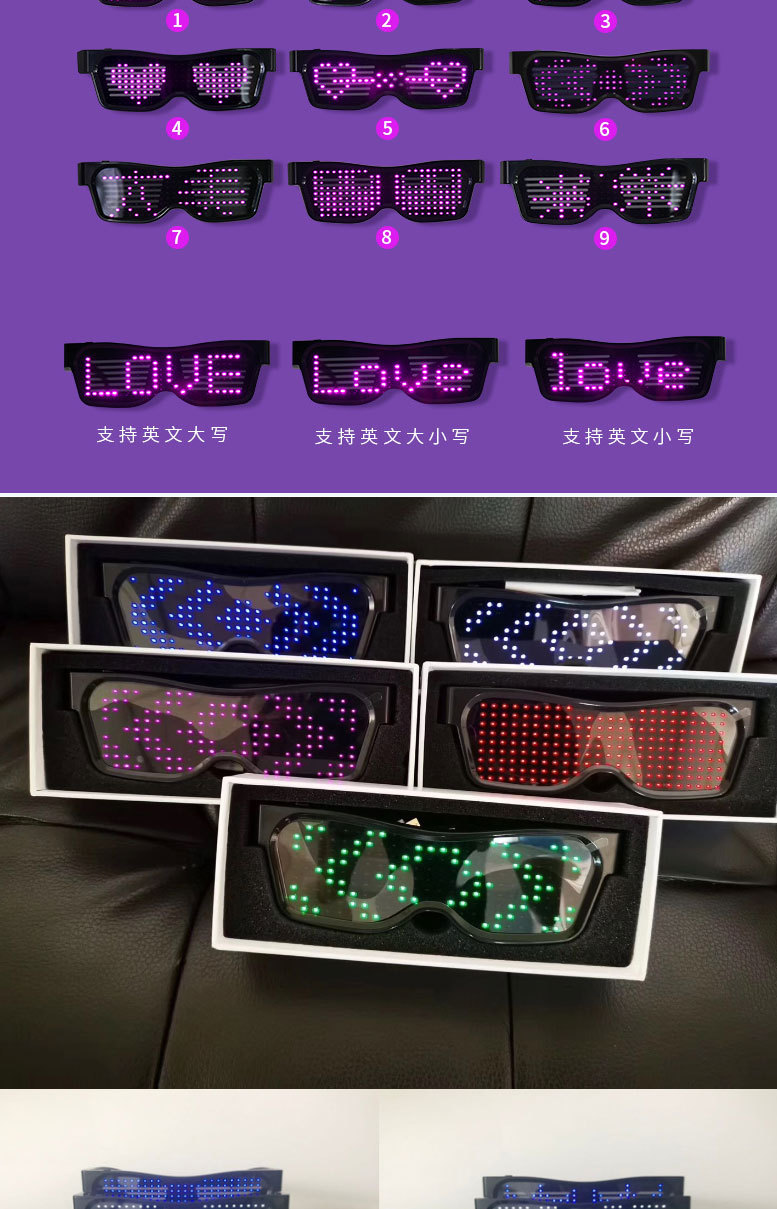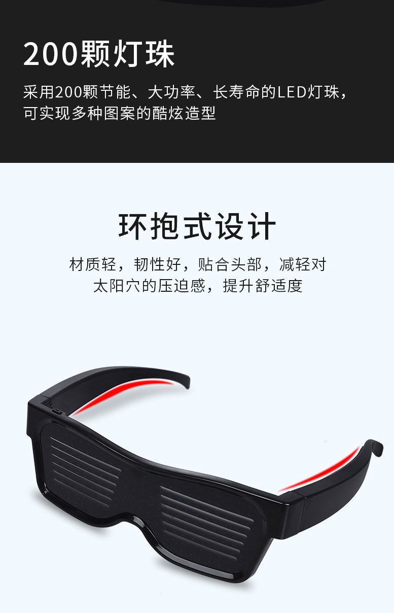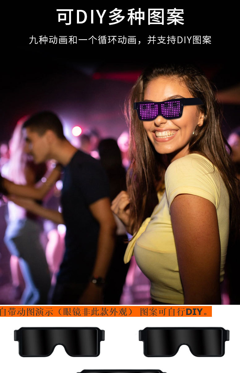APP Bluetooth LED light-emitting glasses Tiktok bar disco dynamic charging custom pattern LED sunglasses