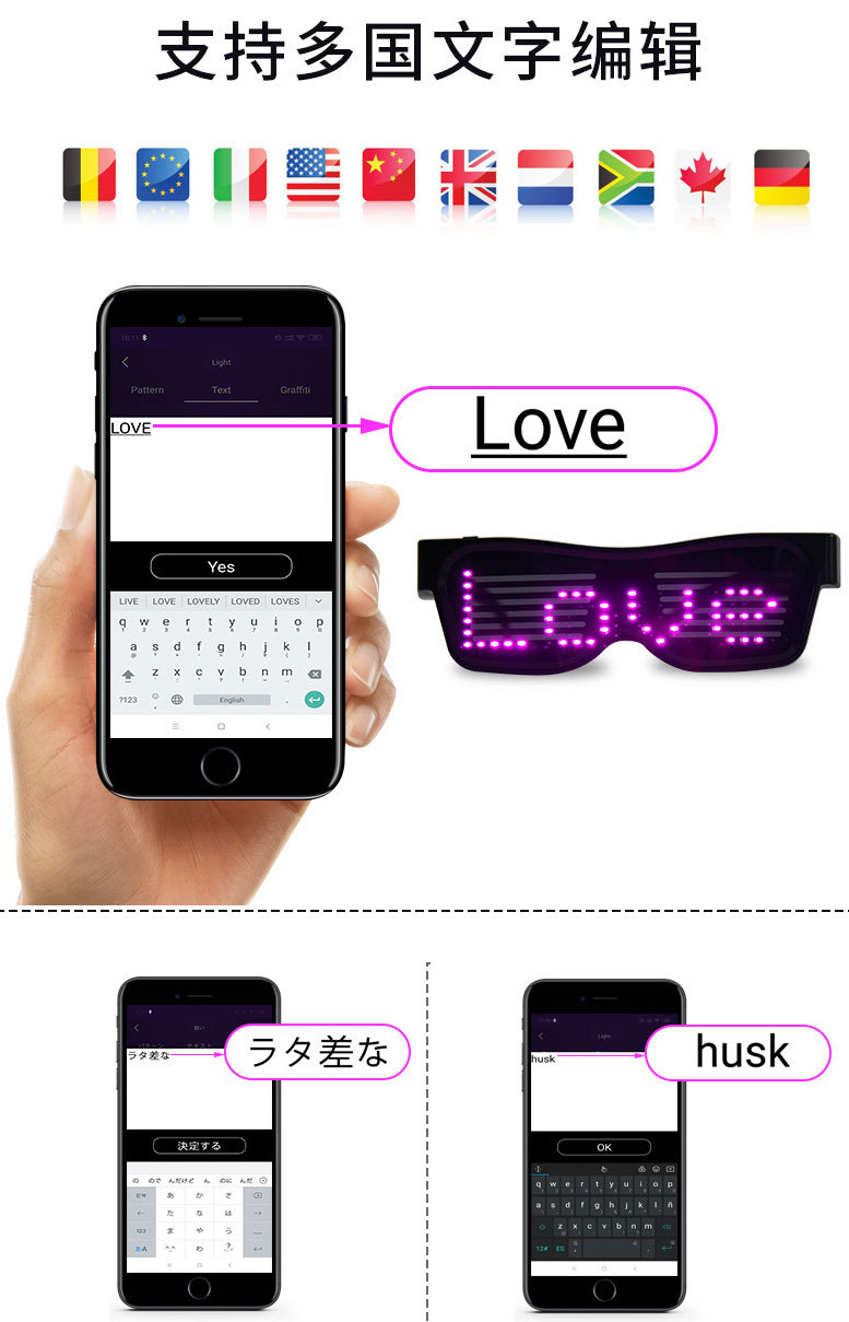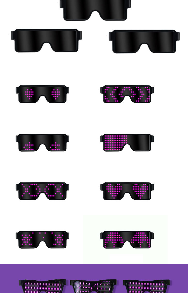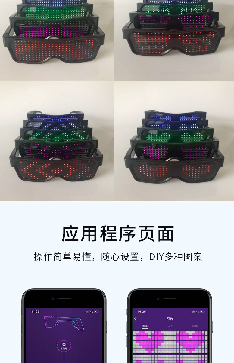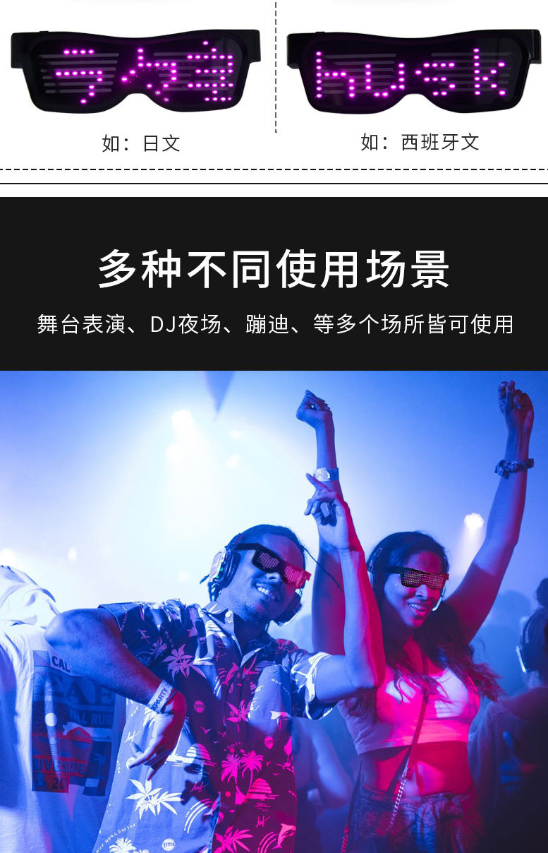 APP Bluetooth LED light-emitting glasses Tiktok bar disco dynamic charging custom pattern LED sunglasses