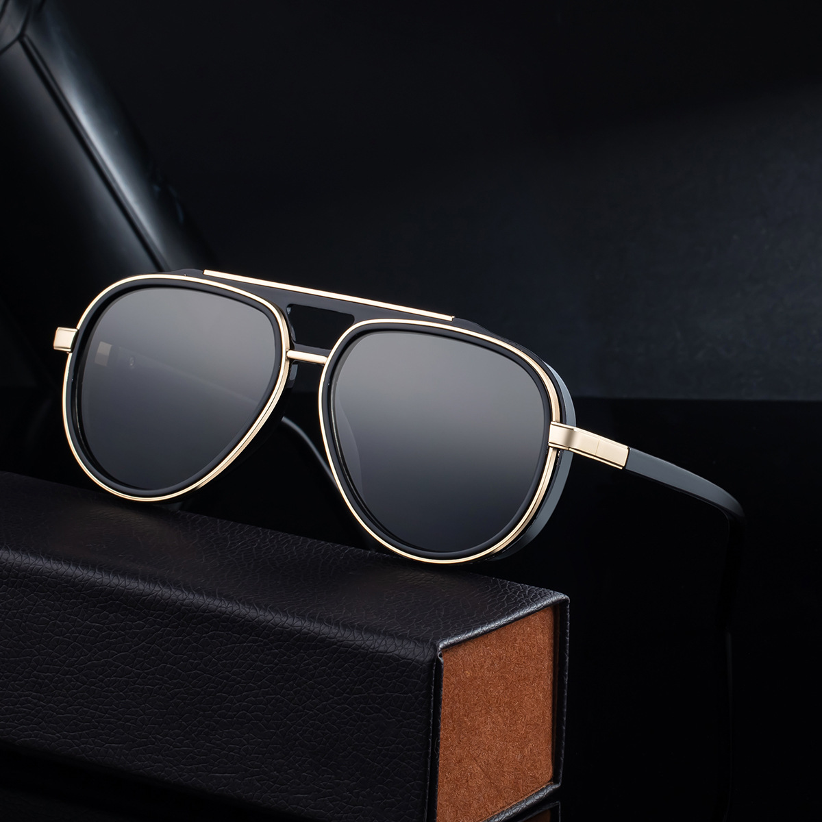 2025 New European and American Fashion Toad Polarized Sunglasses for Men, Retro Pilot, Double Beam Outdoor Sunglasses for Men, Cross border