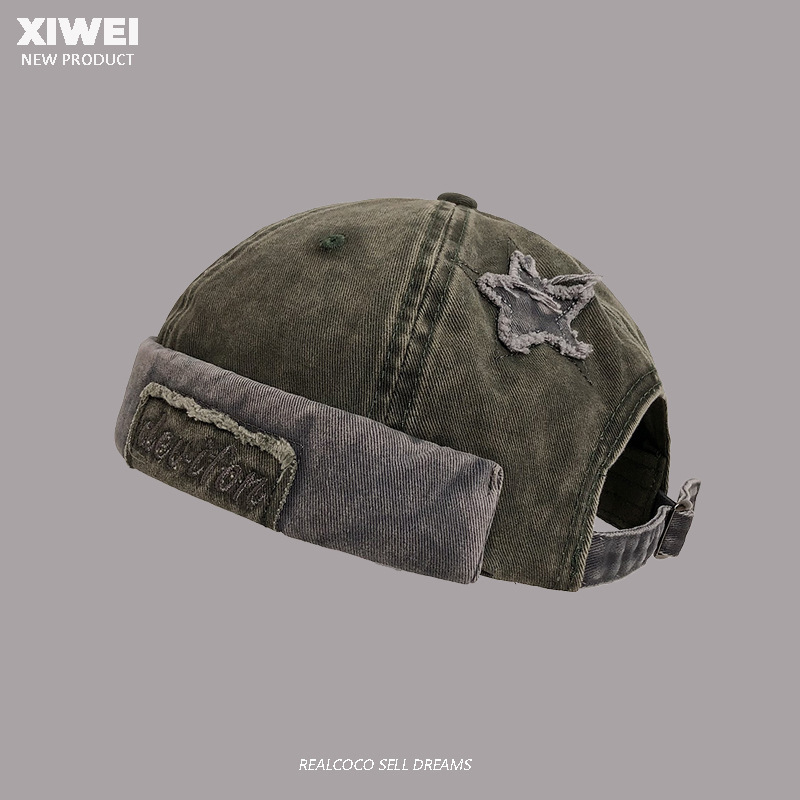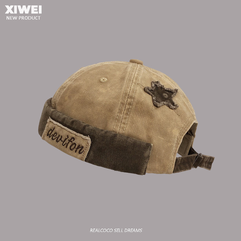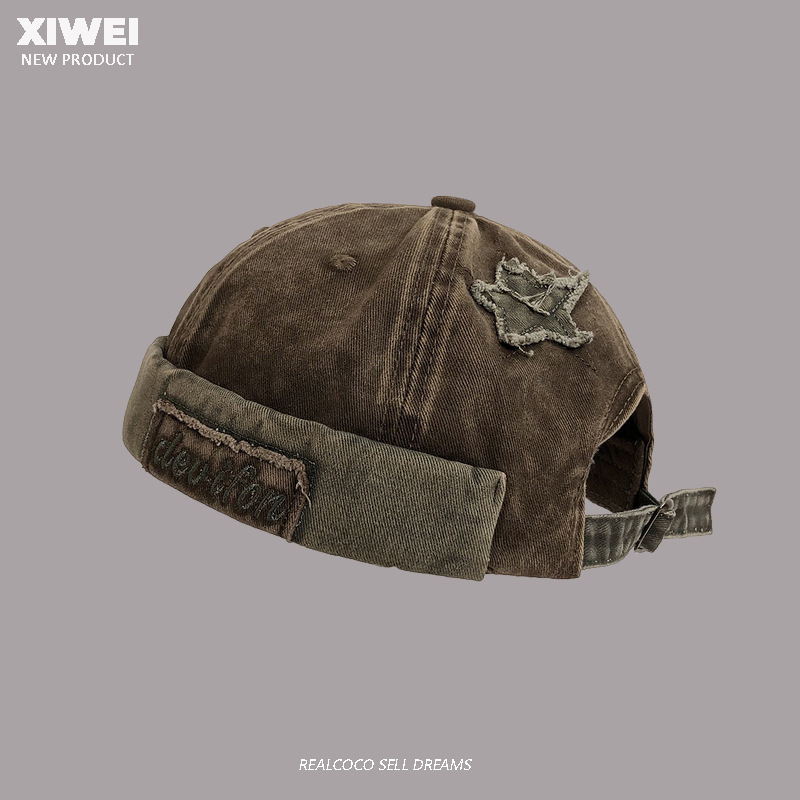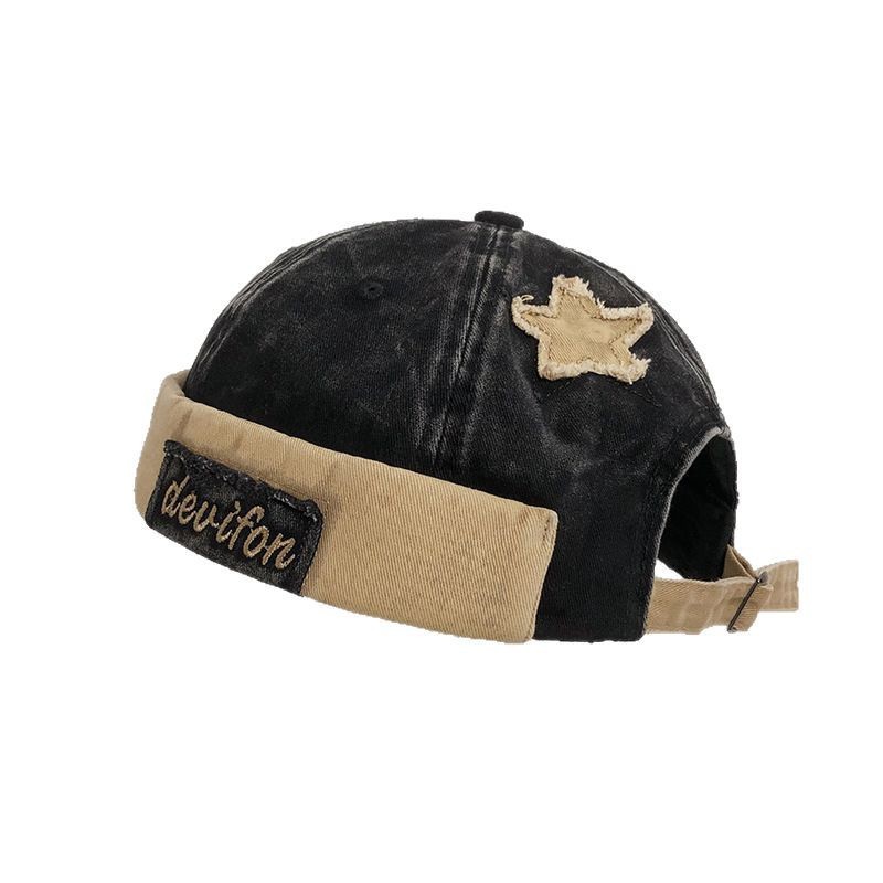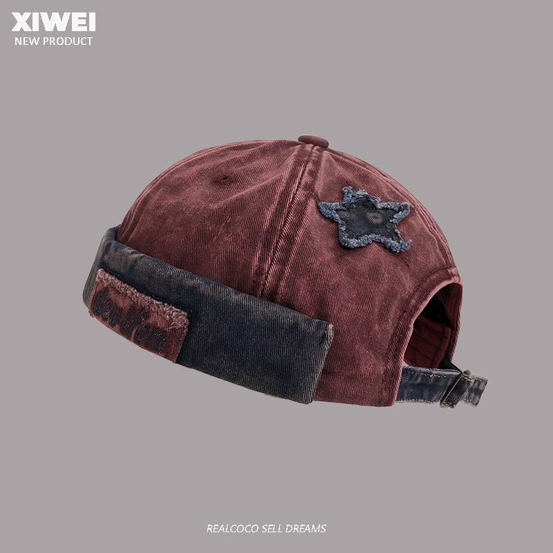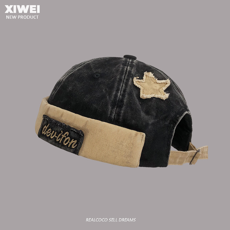 Retro color blocked washed melon skin hat for women in all four seasons, brimless hip-hop yuppie hat, fashionable and versatile trendy brand landlord hat for men