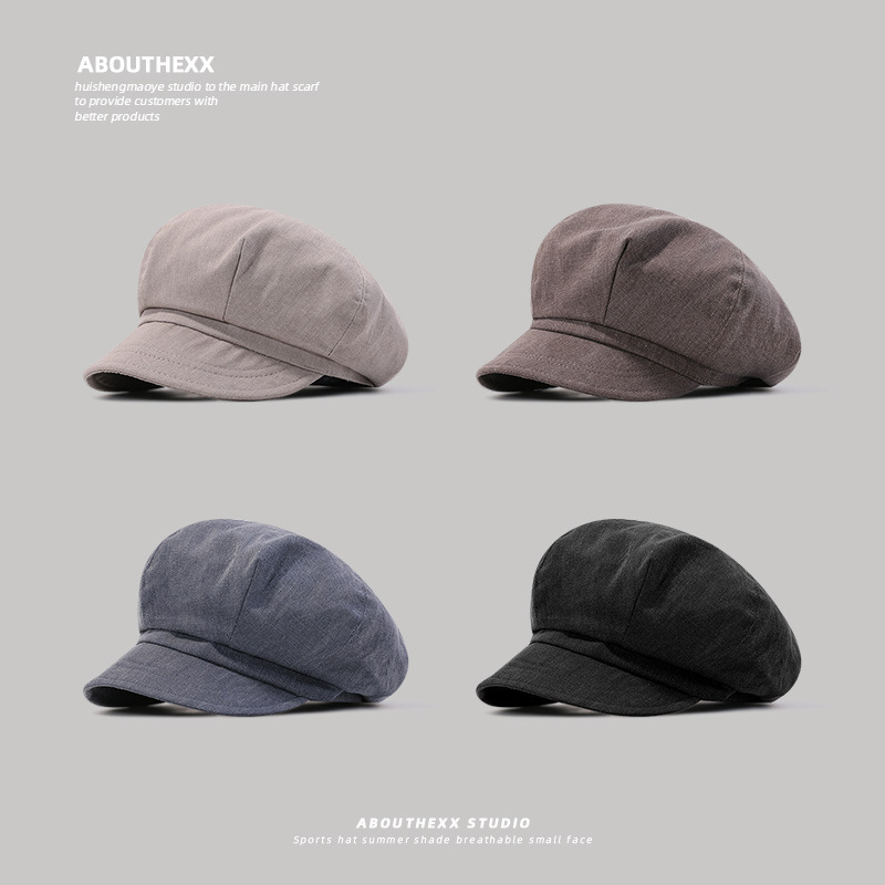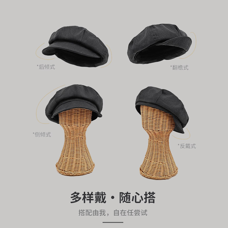 Autumn and winter new hat for women, one hat for four, multiple wearing styles, French beret octagonal hat, big head circumference, retro duck tongue cloud hat
