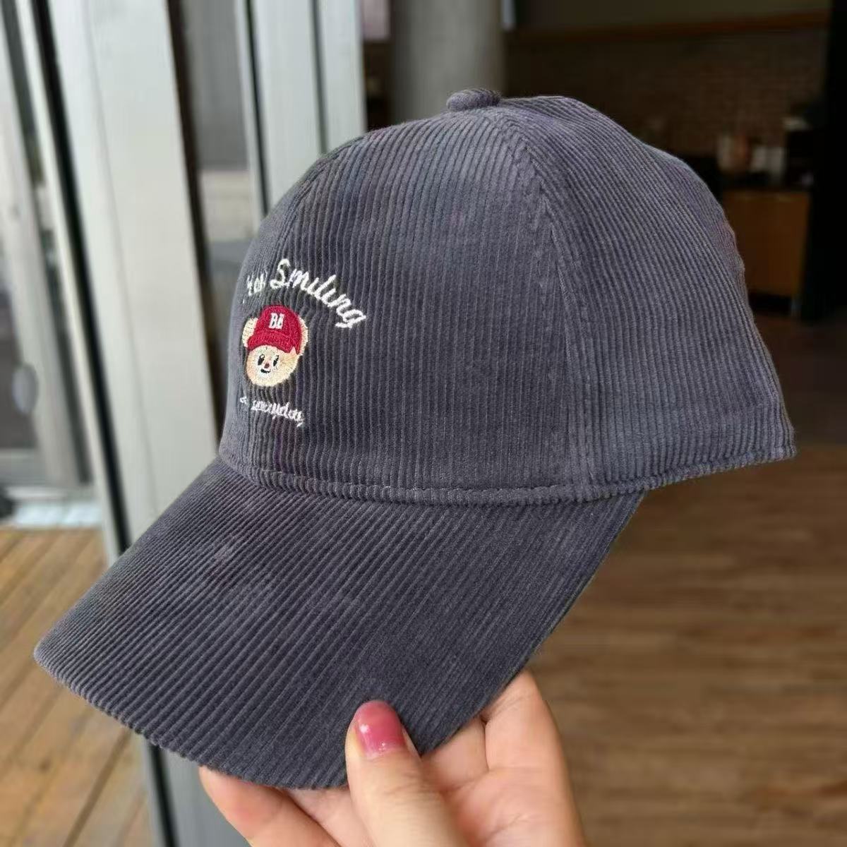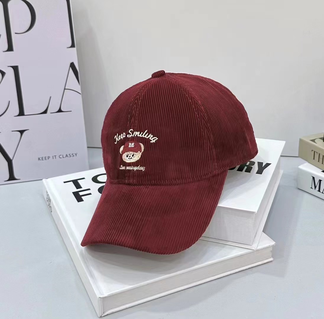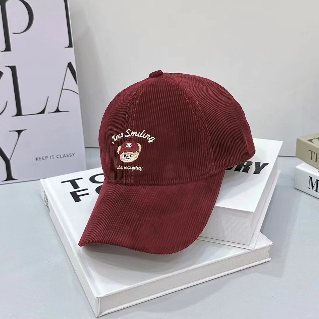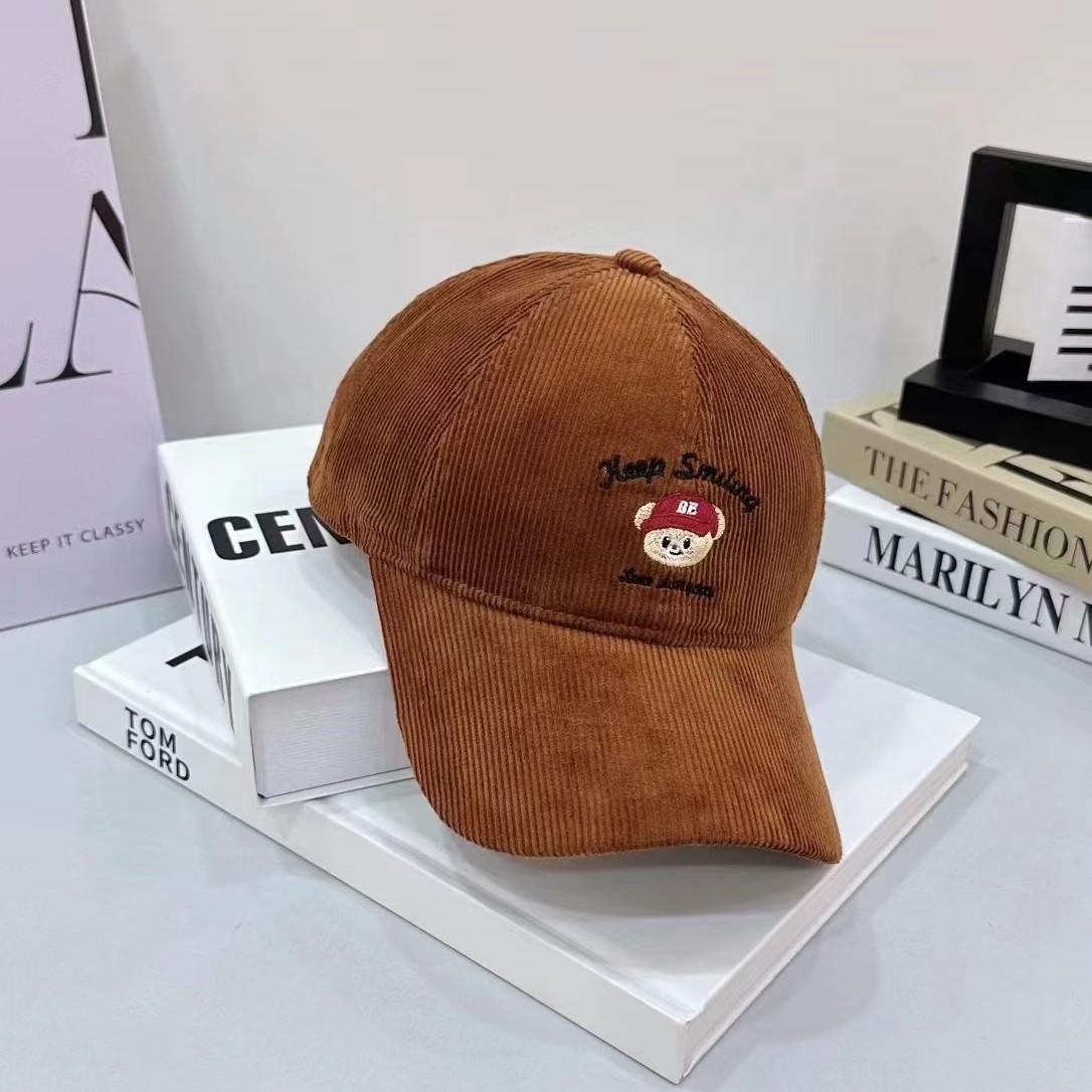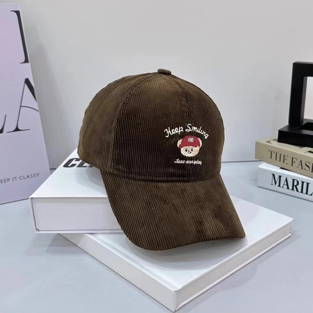 Cartoon cute teddy bear embroidered corduroy baseball cap for men and women in autumn and winter, sweet and age reducing high-quality duckbill cap