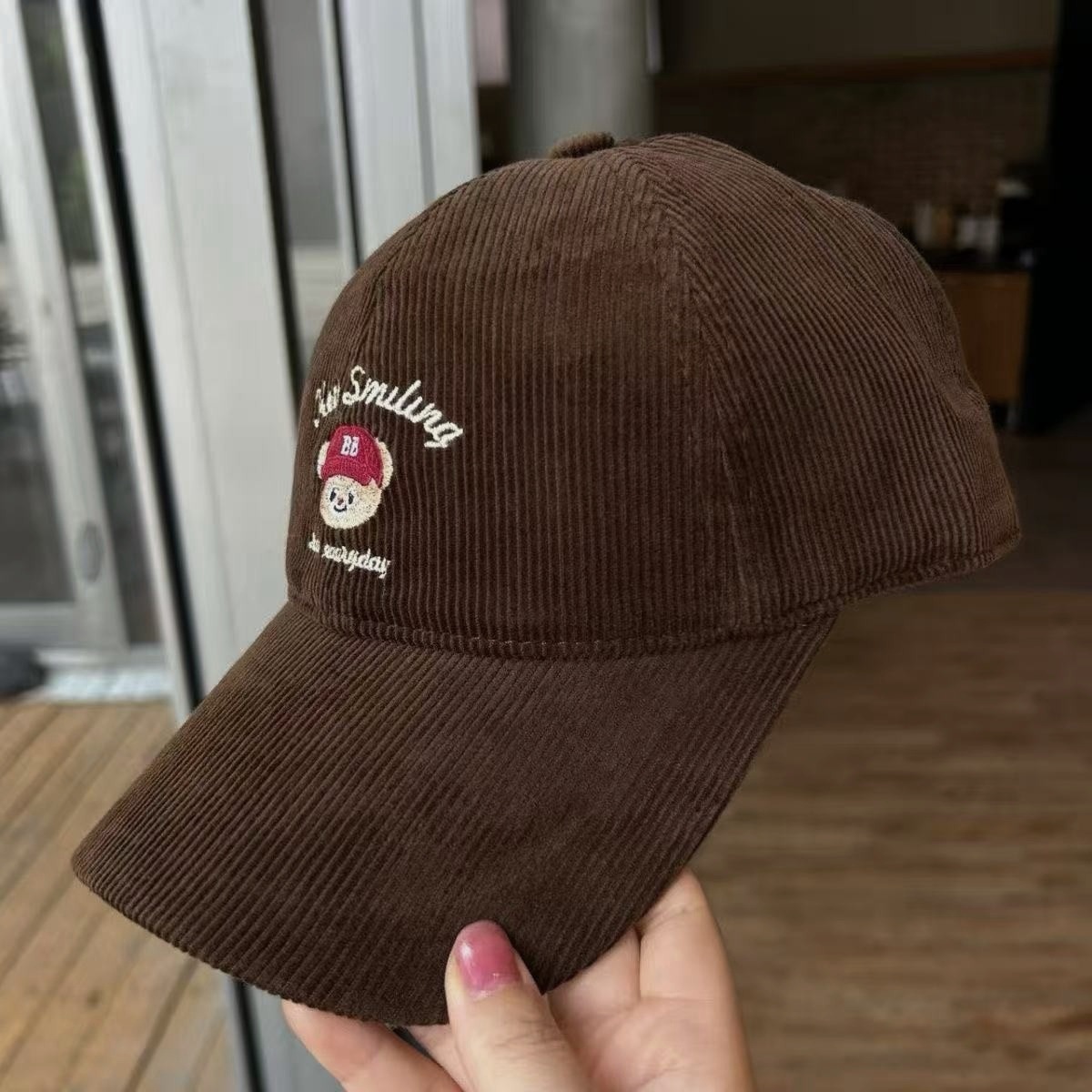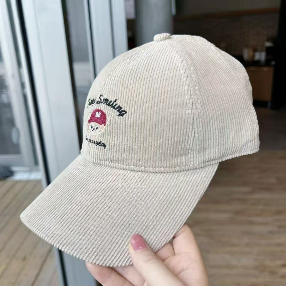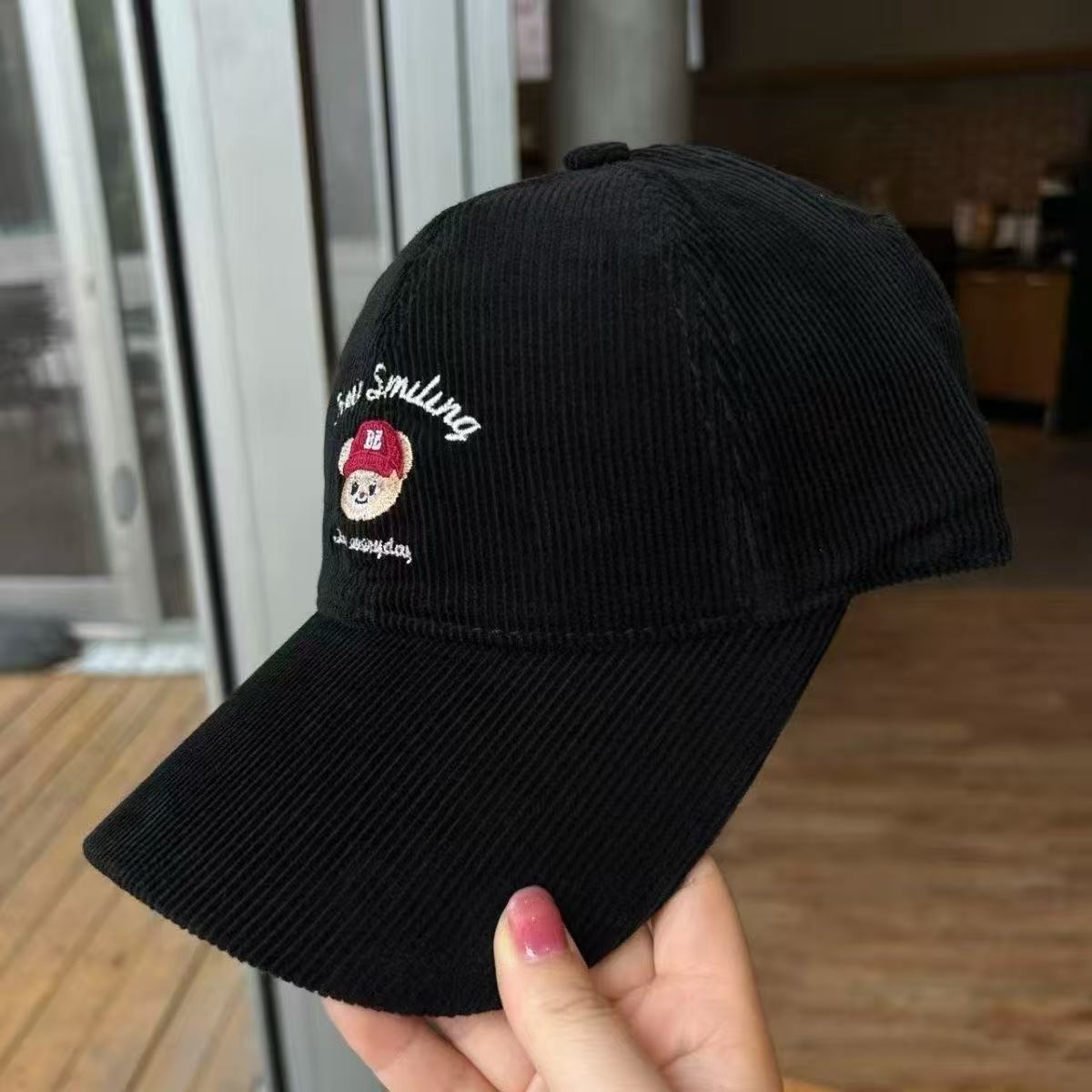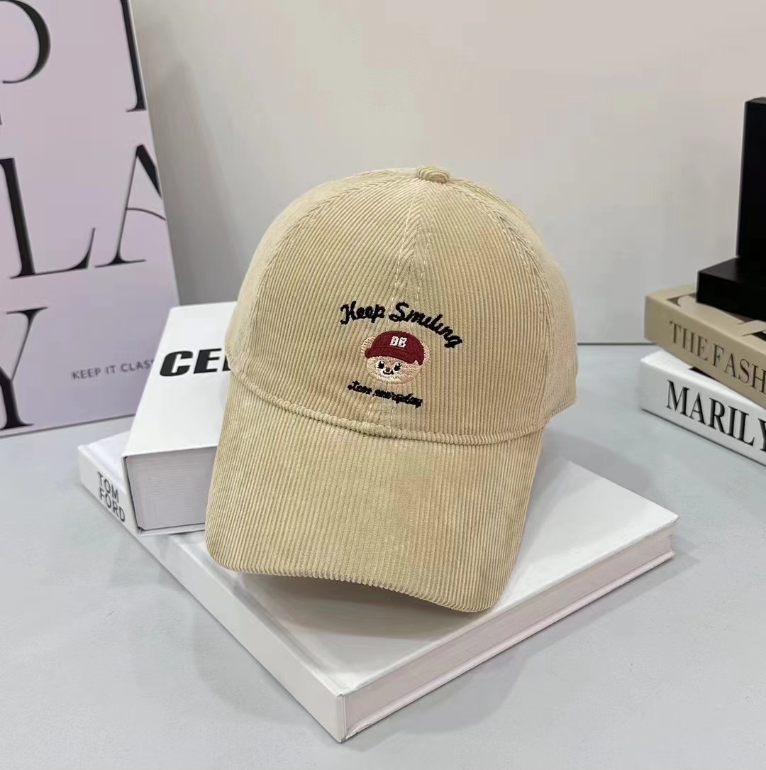 Cartoon cute teddy bear embroidered corduroy baseball cap for men and women in autumn and winter, sweet and age reducing high-quality duckbill cap