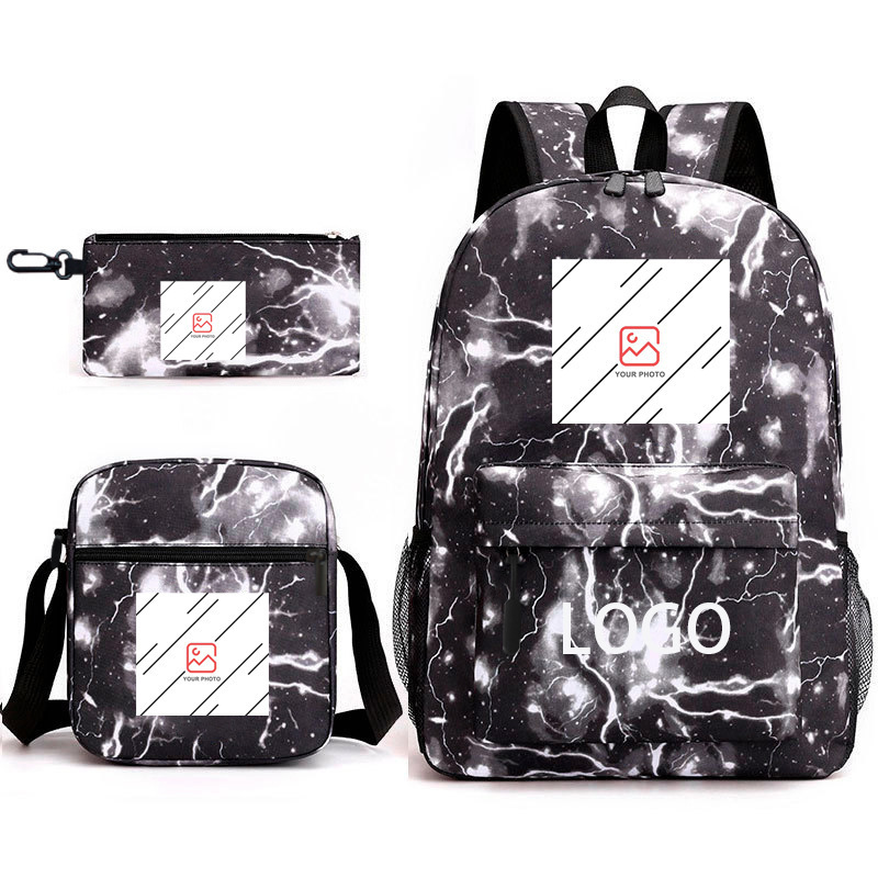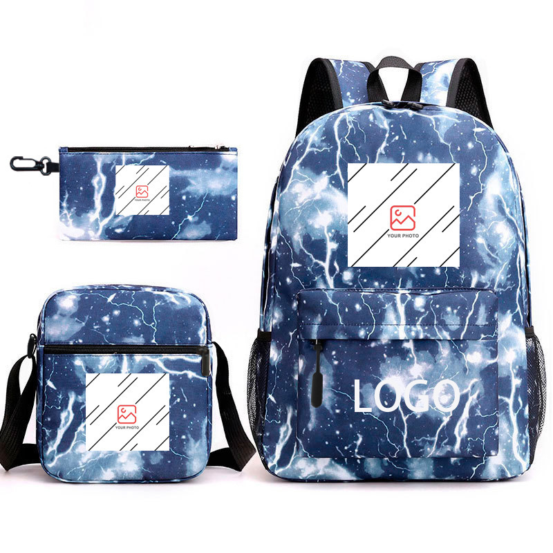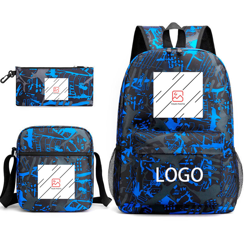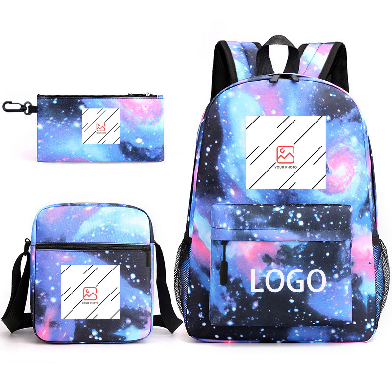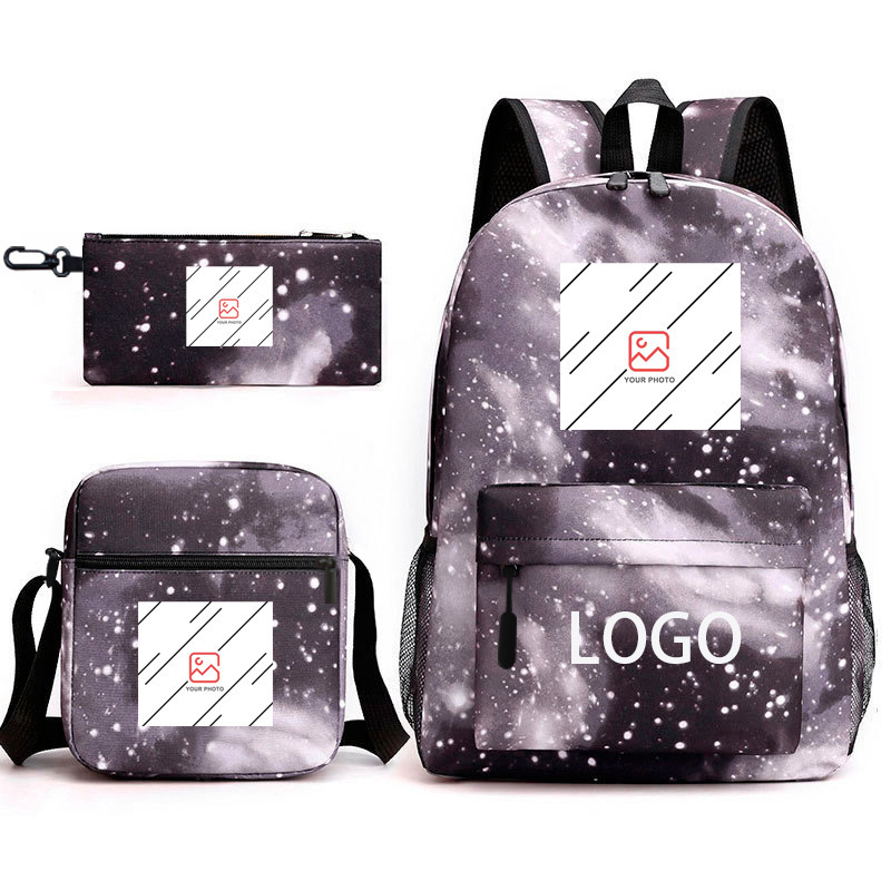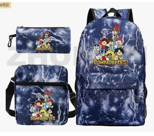 Spot wholesale hot stamping three piece set backpack cartoon peripheral printed backpack student shoulder bag pencil case formulated