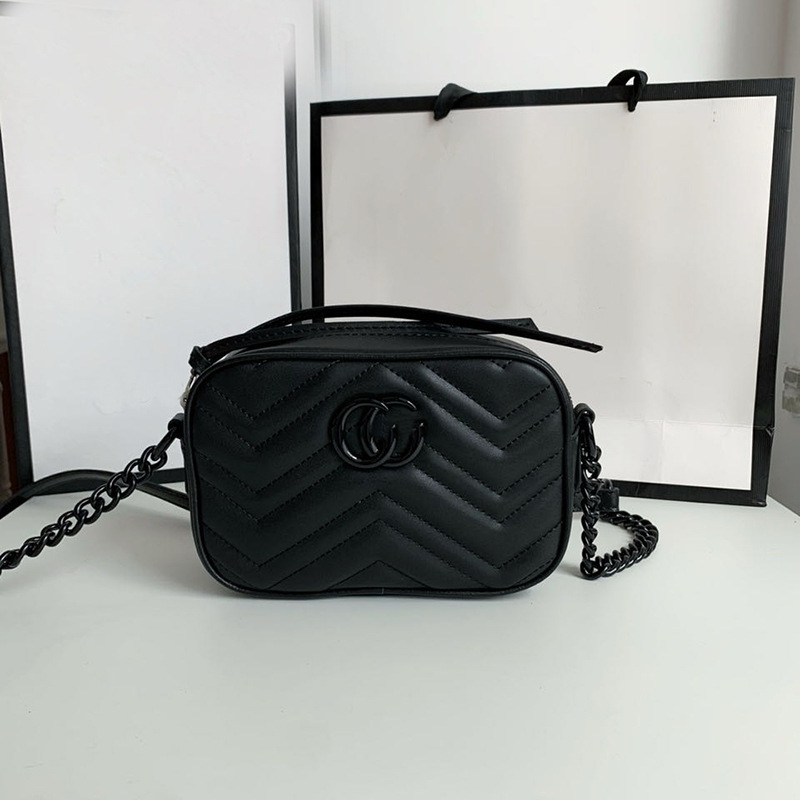 2024 New Double G Camera Bag Marmont Wave Pattern Chain Bag Cross Shoulder Leather with LOGO