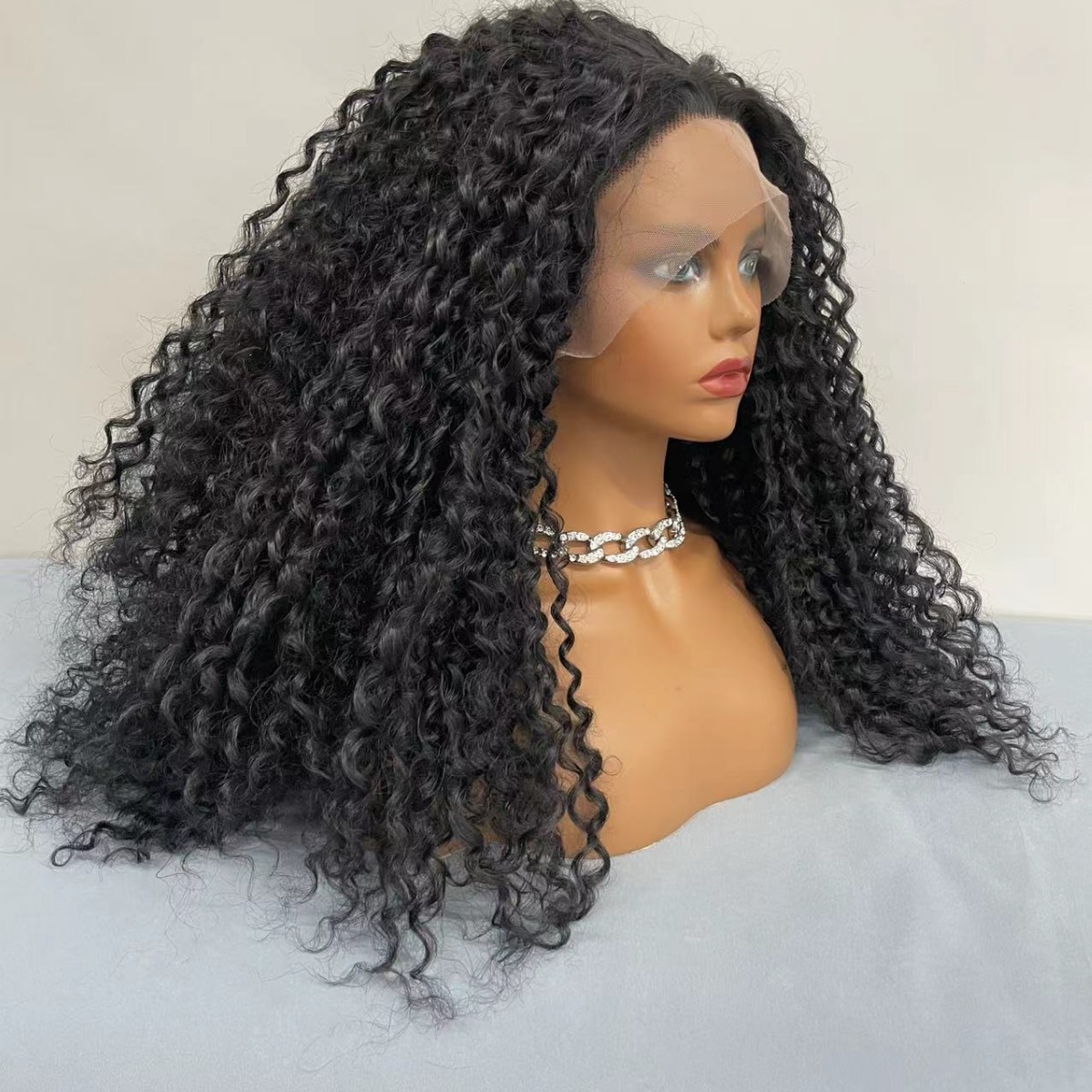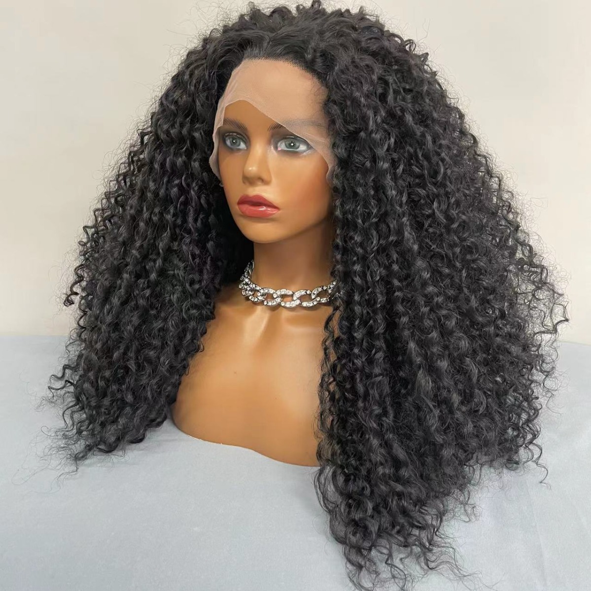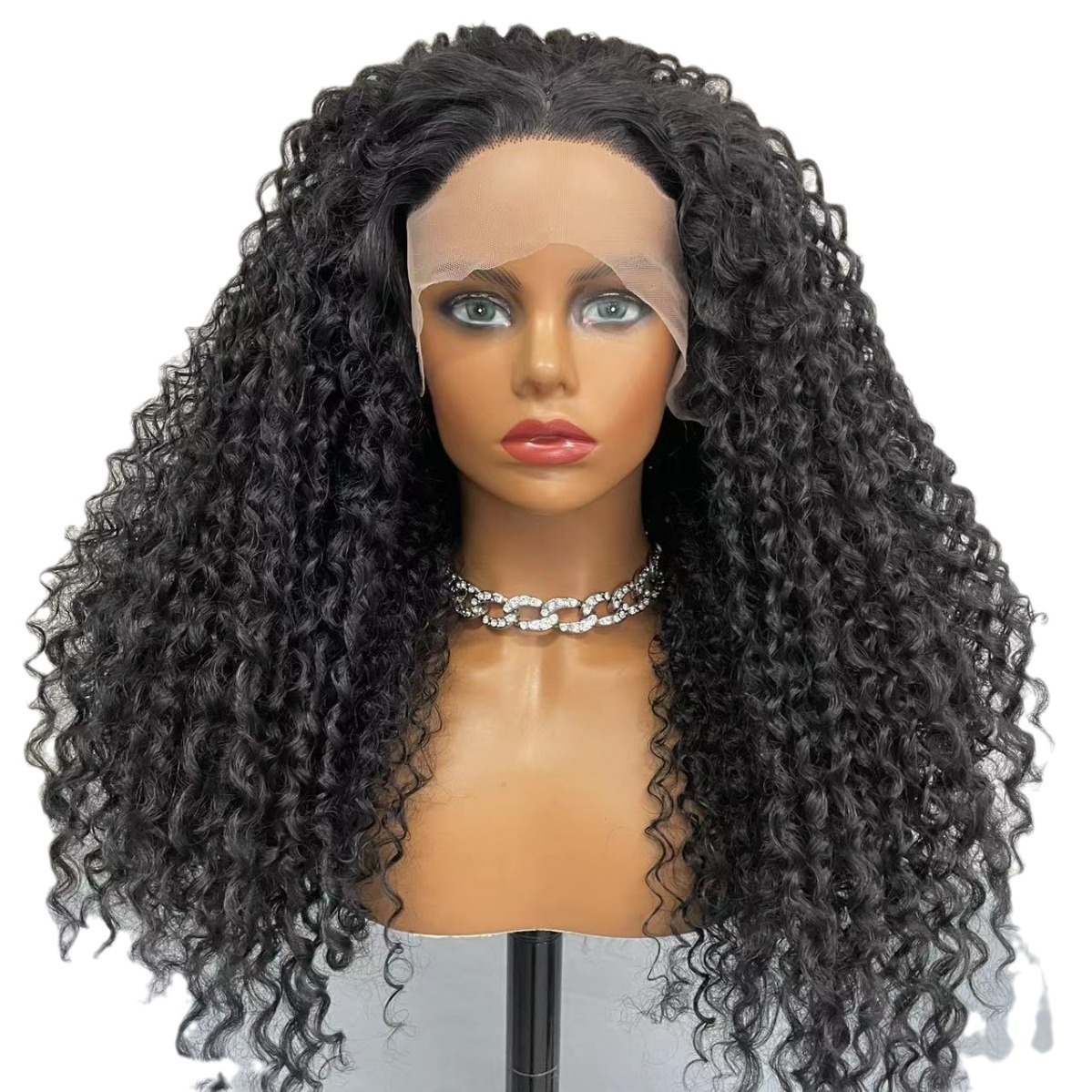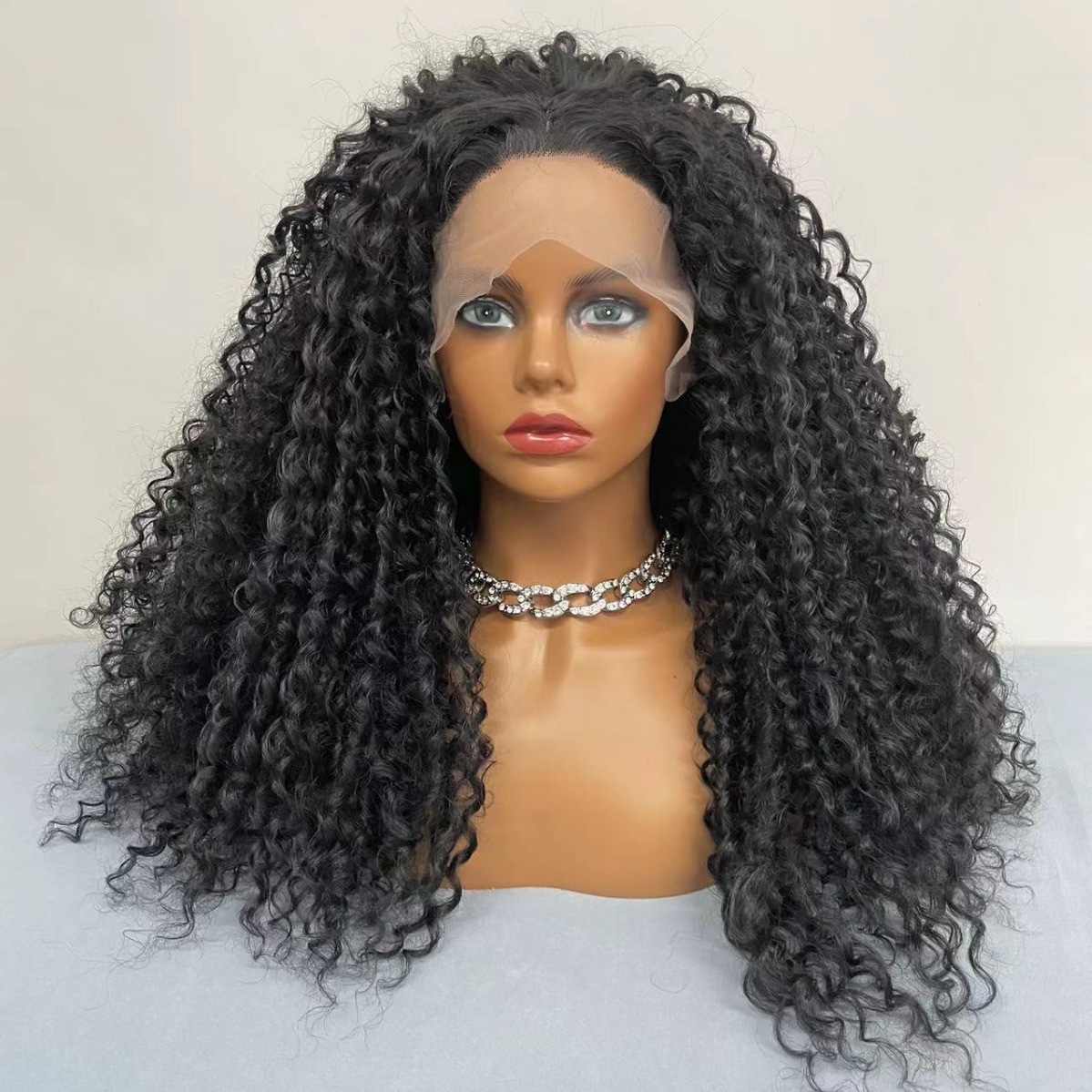 Spot Cross border European and American Women Wigs Front Lace Wig High Temperature Silk Black Long Curled Hair African Small Curl