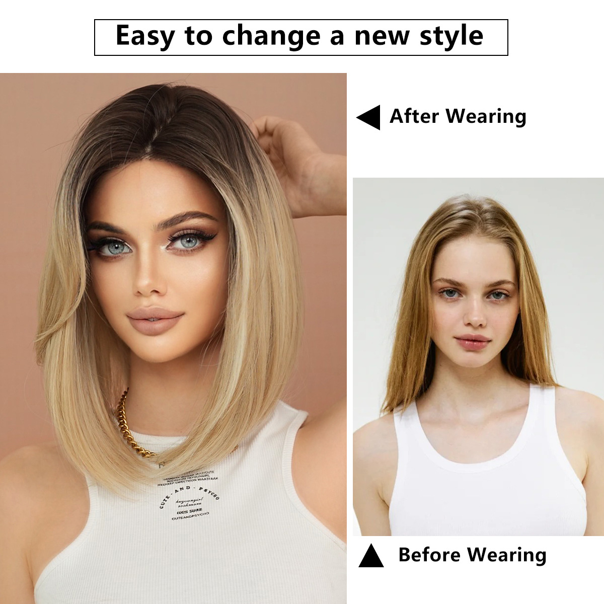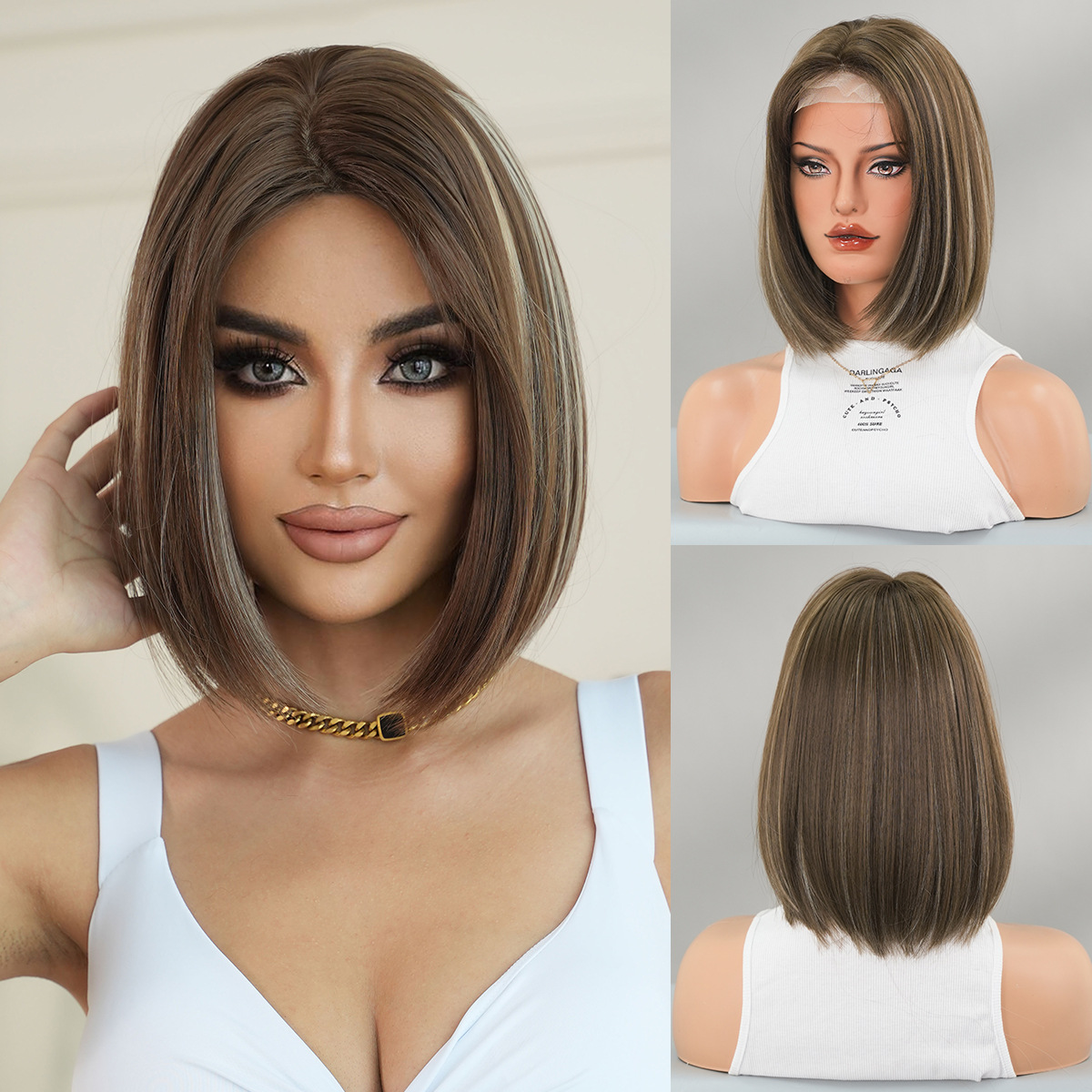 European and American Small Lace Wig Full Headset Gradient Gold Wave Head Shoulder length Women's Short Straight Hair Amazon AliExpress