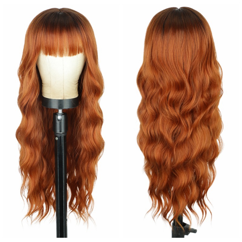 Wig hairstyleLong curly hair can be flat or slanted with bangs