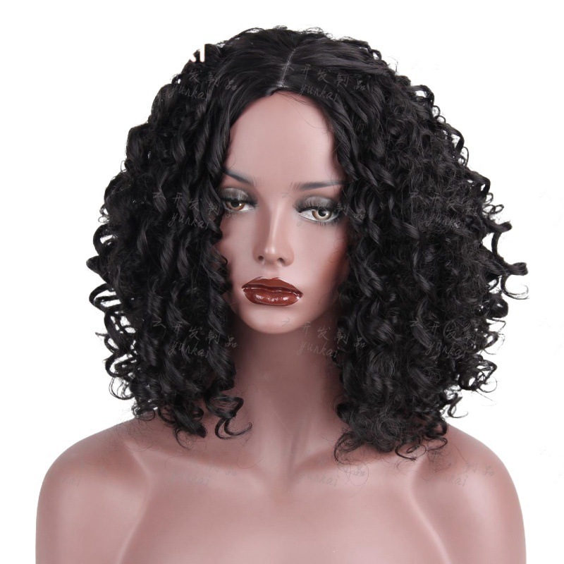 Cross border African curly hair, short hair, European and American fashion, black synthetic women's hair, hair cover, split wig, full head cover