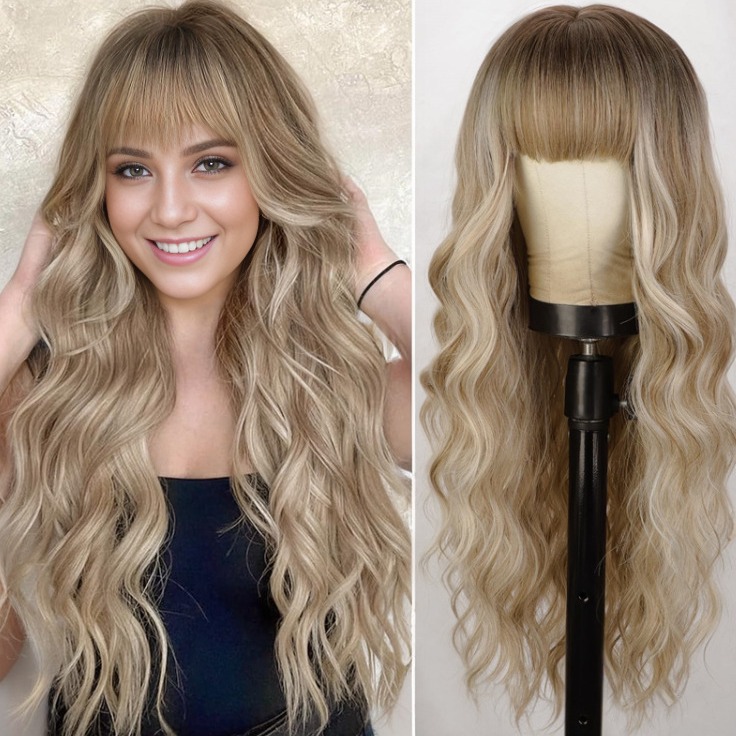 European and American foreign trade wig full head set for women with large waves, long bangs, long curly hair, gradient synthetic wig set wigs