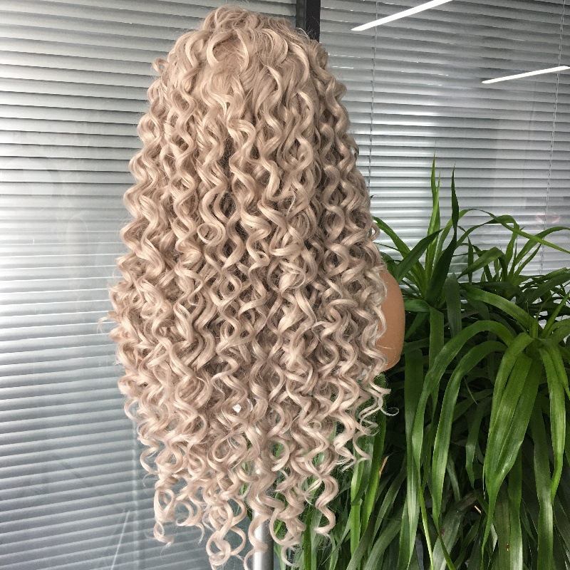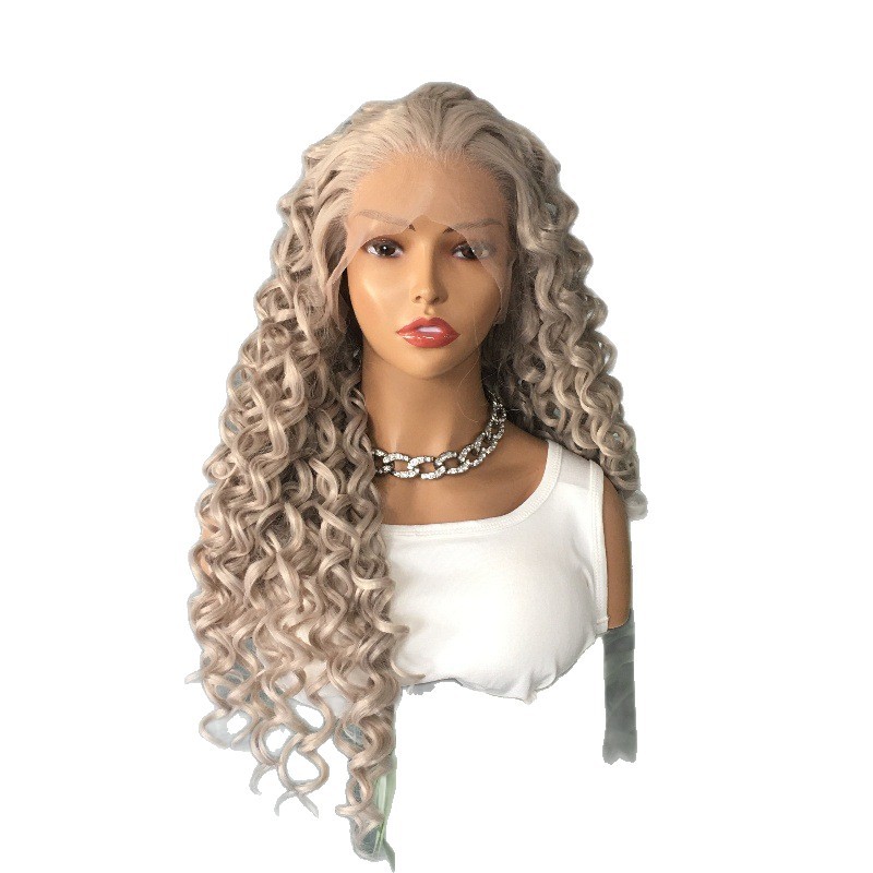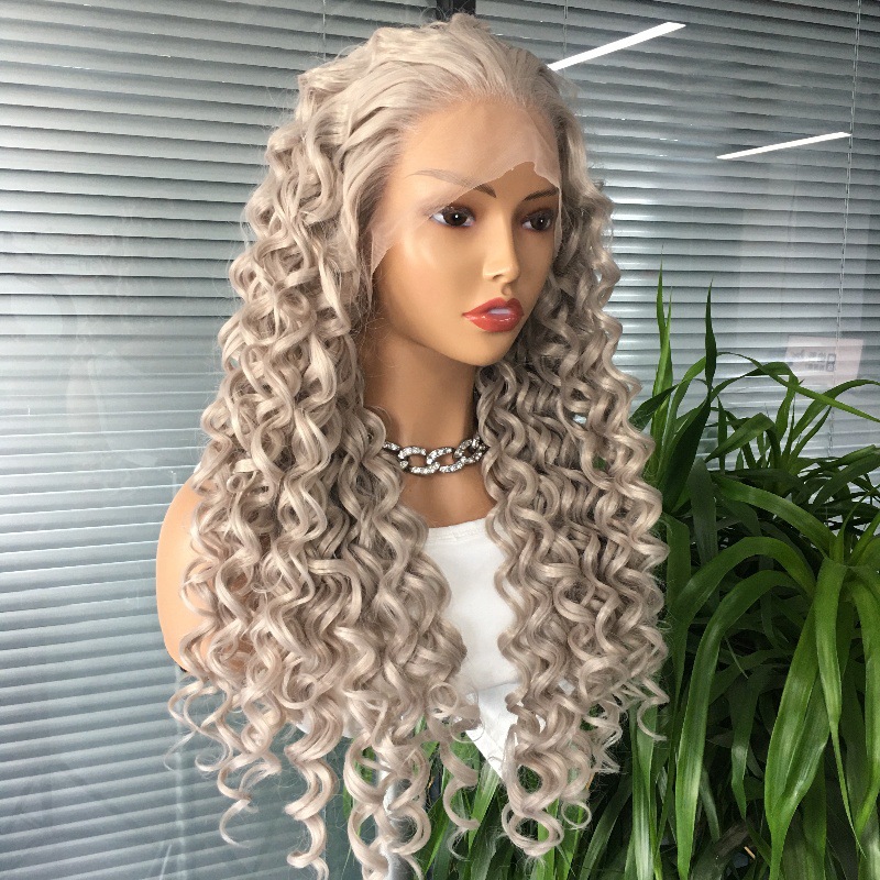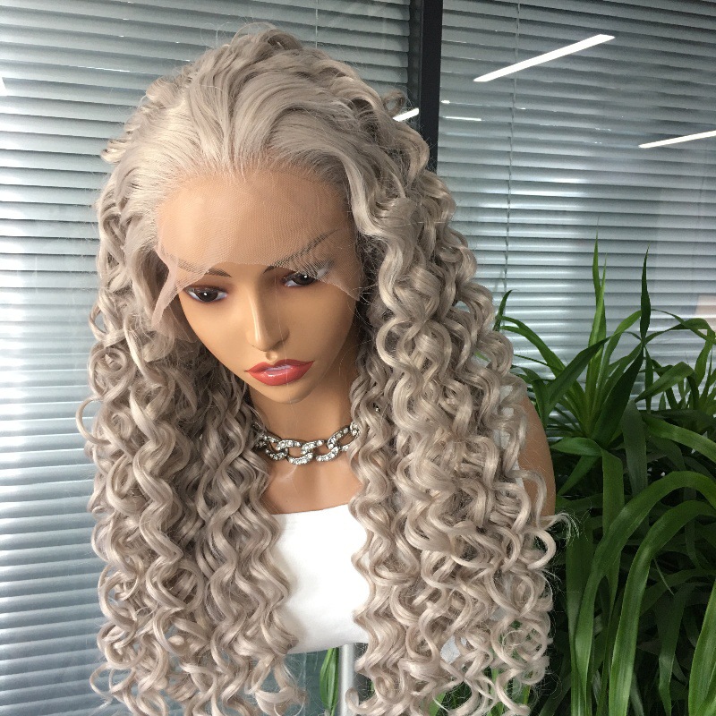 Amazon wig European and American 13x4 synthetic lace headband grandma gray African small curly hair wig factory direct sales