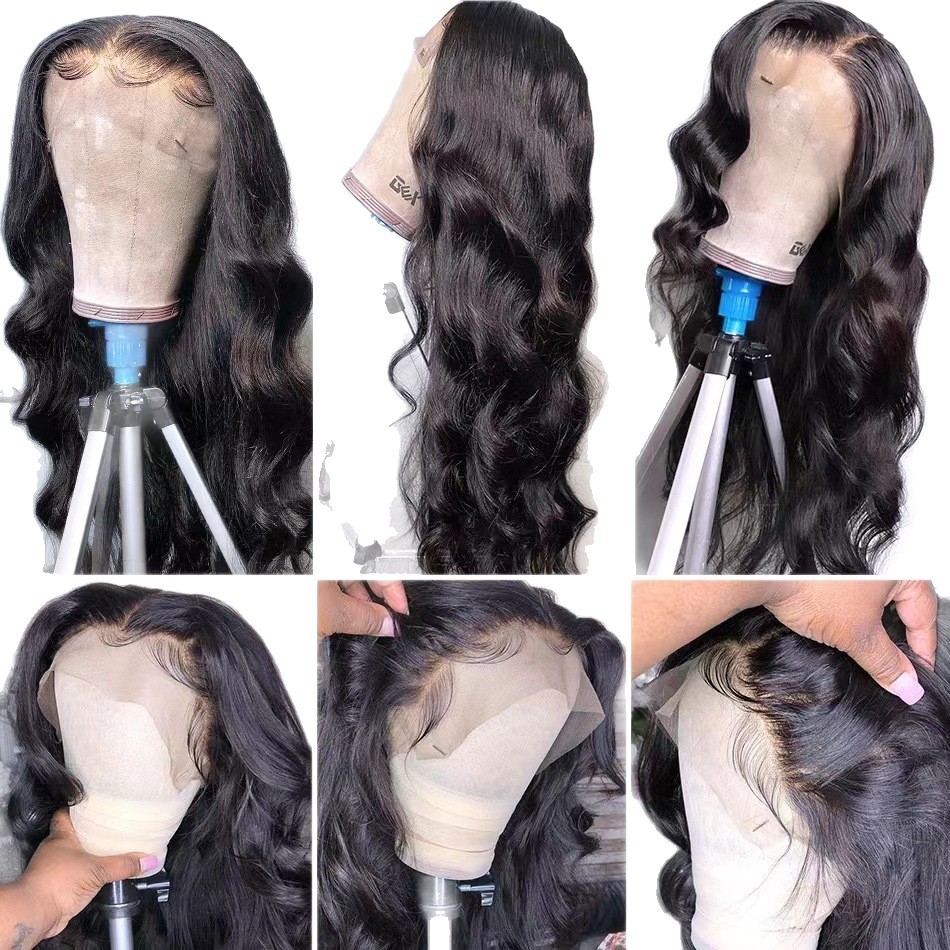 13 * 6 Cross border Wig European and American Women's Front Lace Synthetic Hair Cover Black Fluffy Long Curled Hair Big Wave Manufacturer