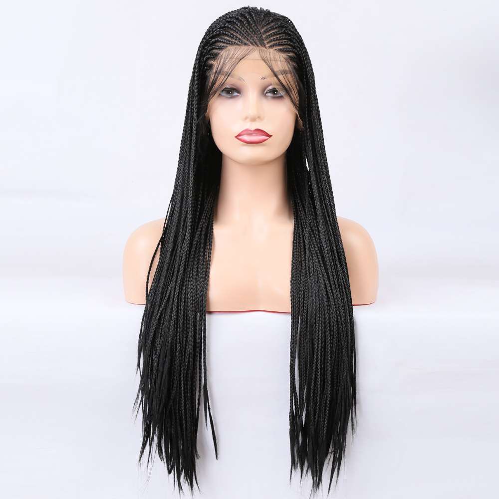 Braided wigs natural color front lace three strand dirty braid wig set baby hair synthetic headband