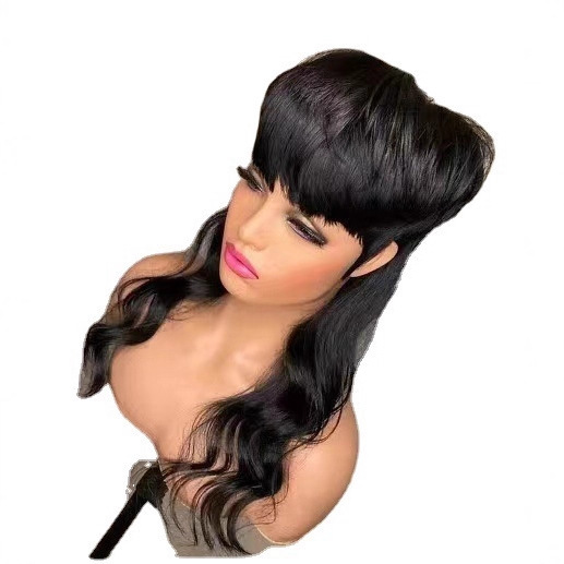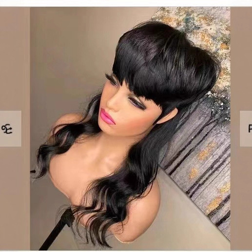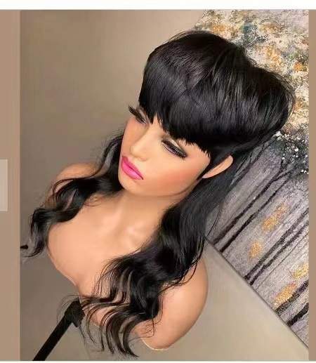 Wig hairstyleLong curly hair can be flat or slanted with bangs