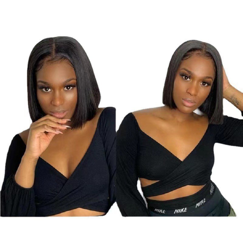 European and American Forehead Lace Wigs for Women, BoBo Head, Short Straight Hair, High Temperature Silk, Fashion Wigs, Wigs, Full Headset