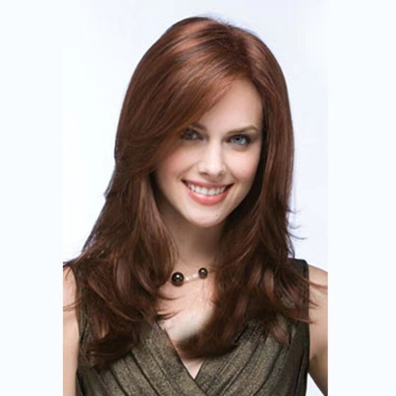 Amazon Women's Wig, European and American Wig, Brazilian High Temperature Silk Fiber Wig, Natural Wave Inner Buckle, Straight Hair